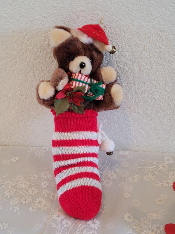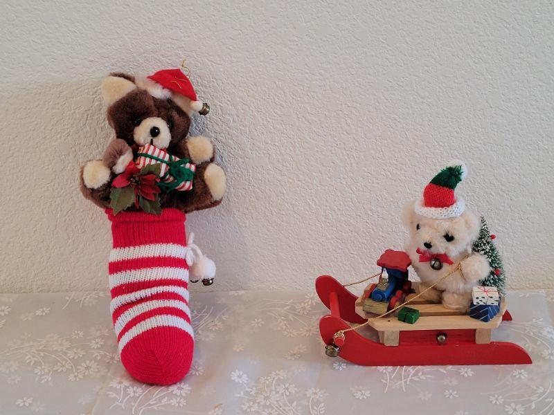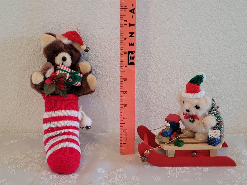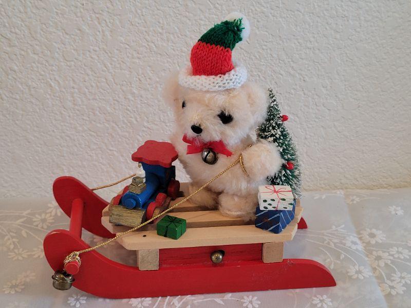 Lot 372: Vintage Music Box Teddy Stocking and Teddy Sledding