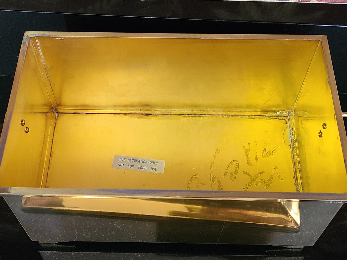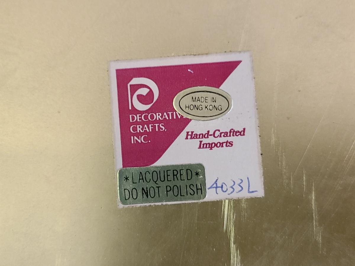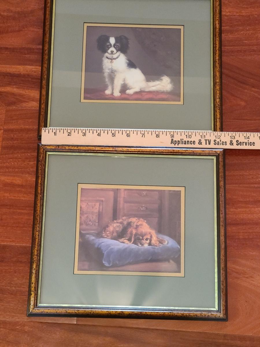 Two artworks of dogs, and a brass colored box. This box is lightweight and does not feel like solid brass, but brass flashed. Please see all pictures as they are the best representation of the items. The pictures show condition, measurements if taken, and what is included in the lot. Due to the large amount that we photograph and the time frame, we are not always able to take measurements. All items unless noted, are pre-owned and have been used. If you purchased furniture, you must bring help. We do not allow one person to carry large furniture out on their own. Bring help, tools and a truck for the safety of our client’s homes, and your personal safety. Company policy. Thank you.