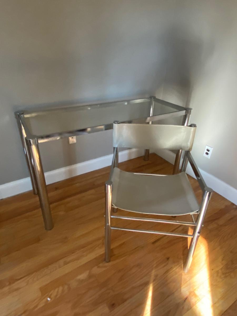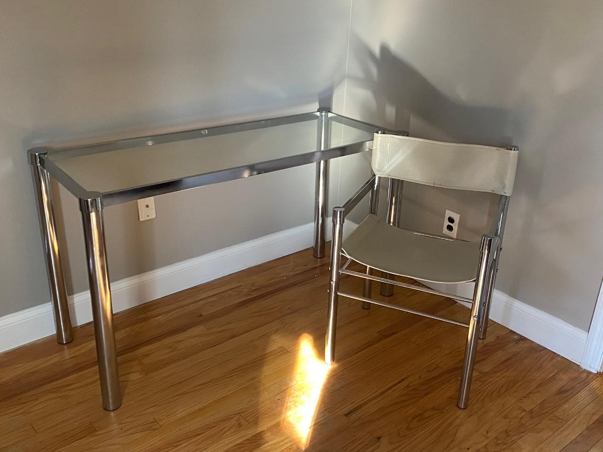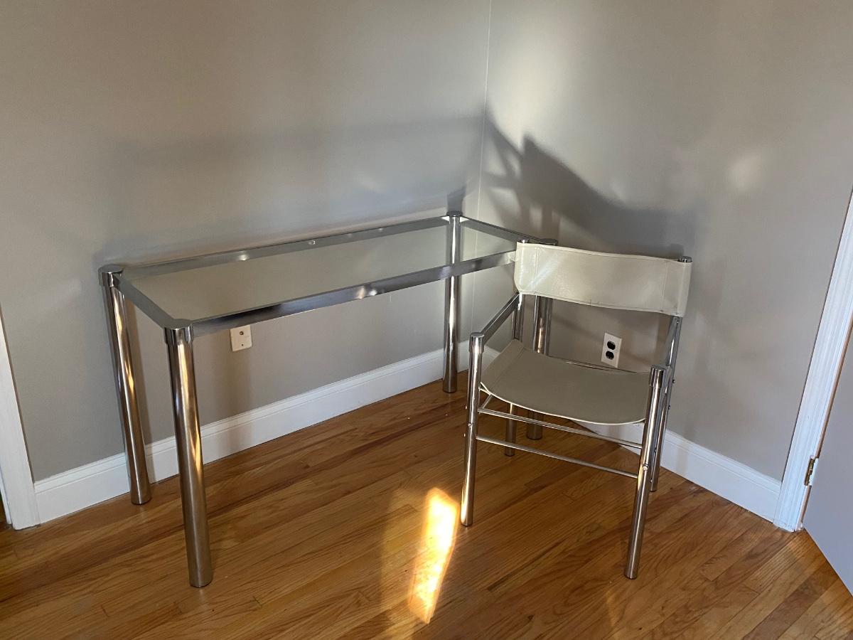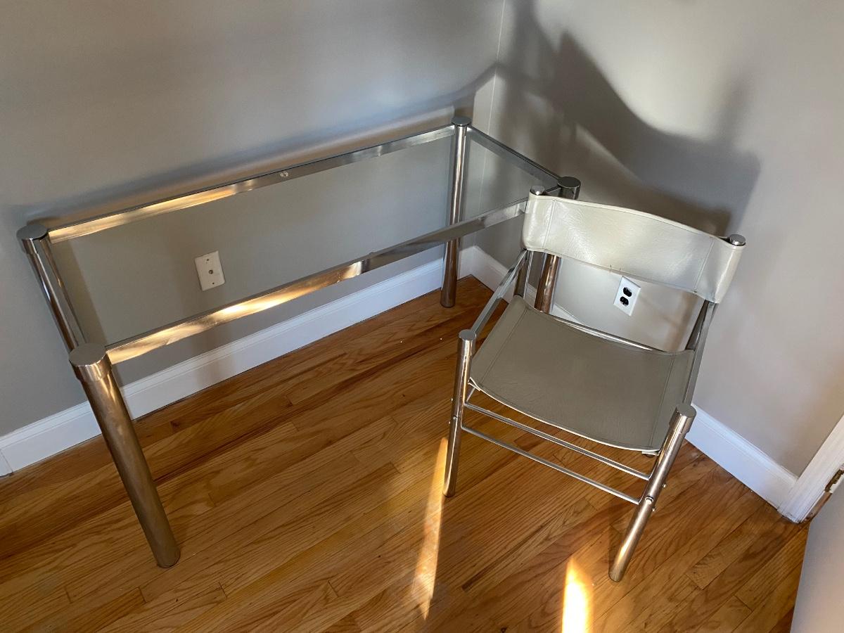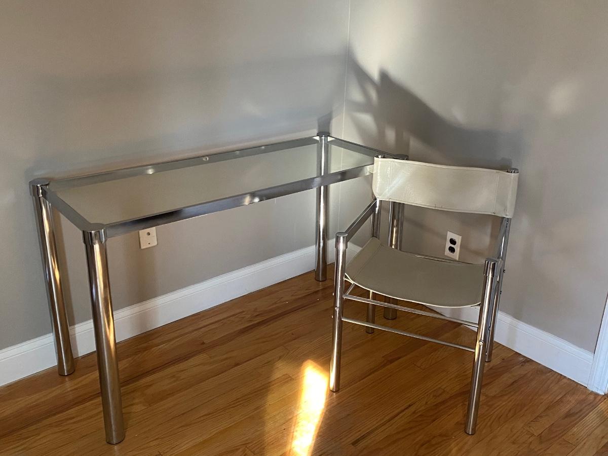 Lot 372: MCM Chrome & Glass Vanity/Desk with Chair