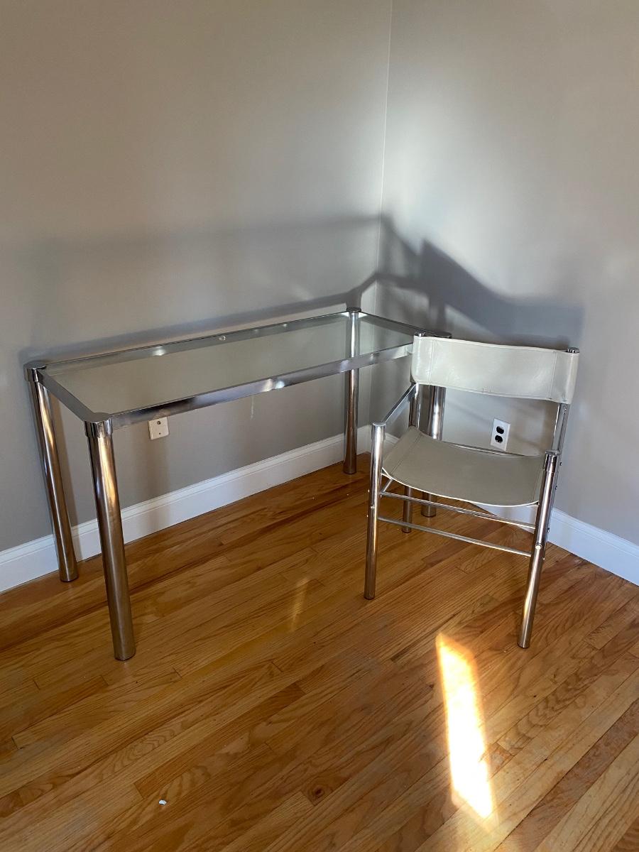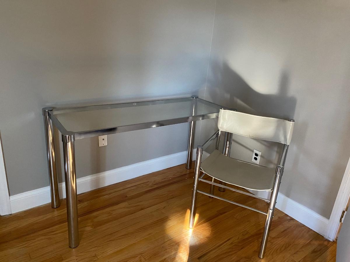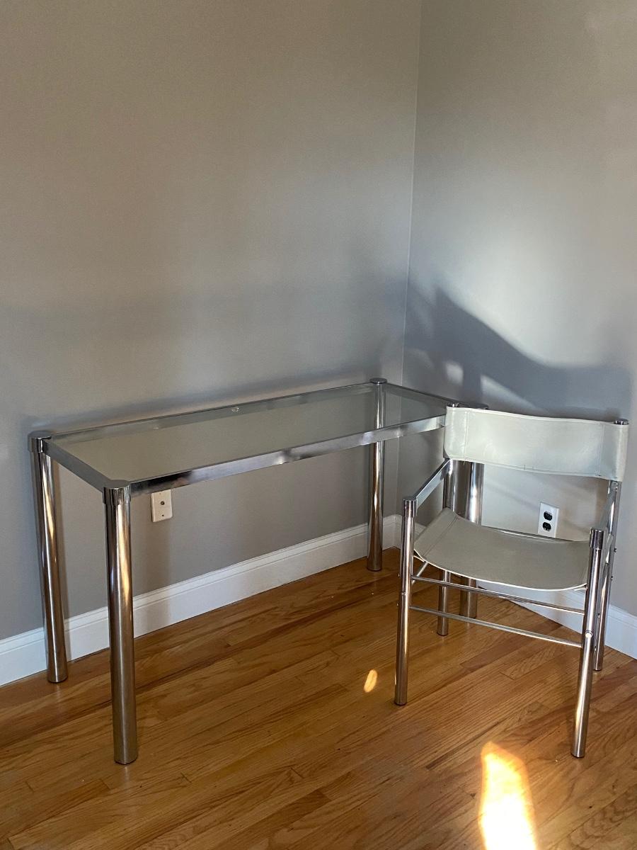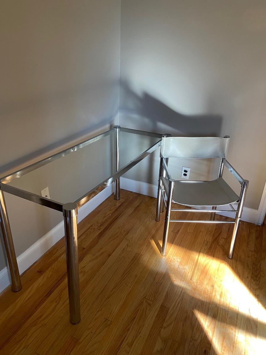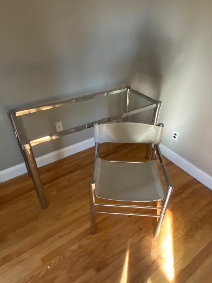 Lot 372: MCM Chrome & Glass Vanity/Desk with Chair