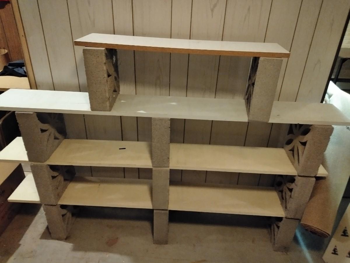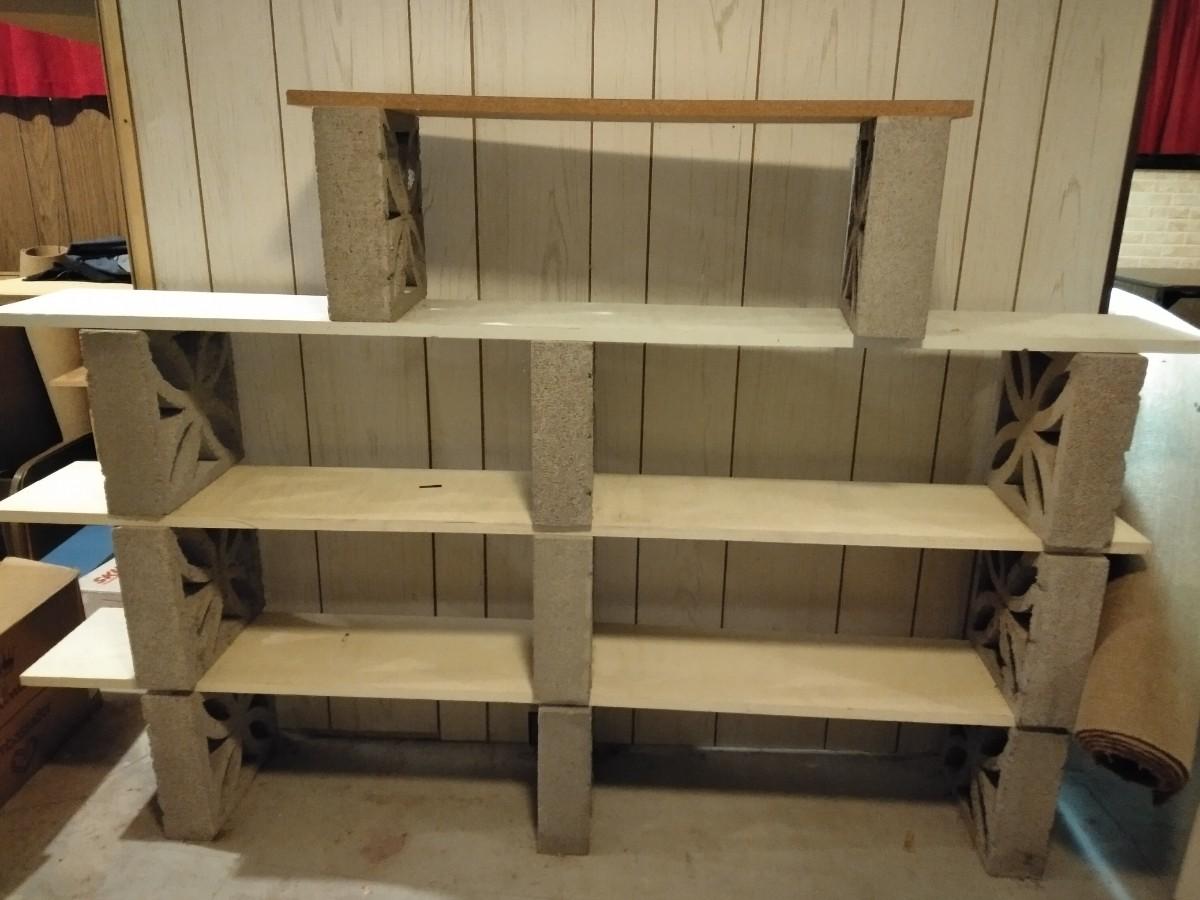 BRICK AND WOOD SHELVING UNIT 50" X 72" X 12"