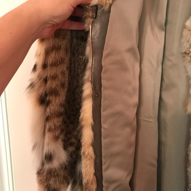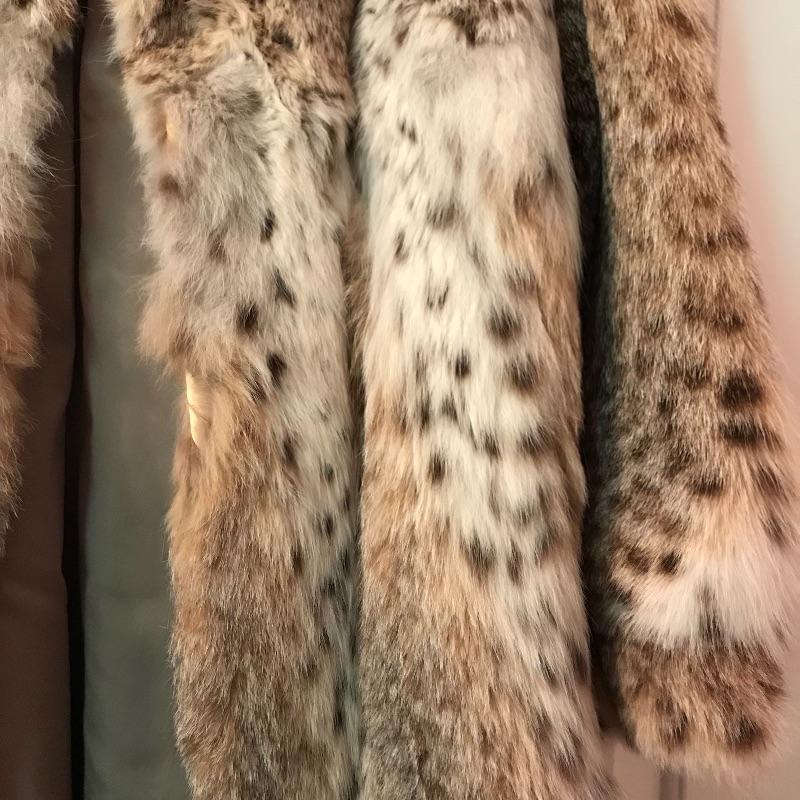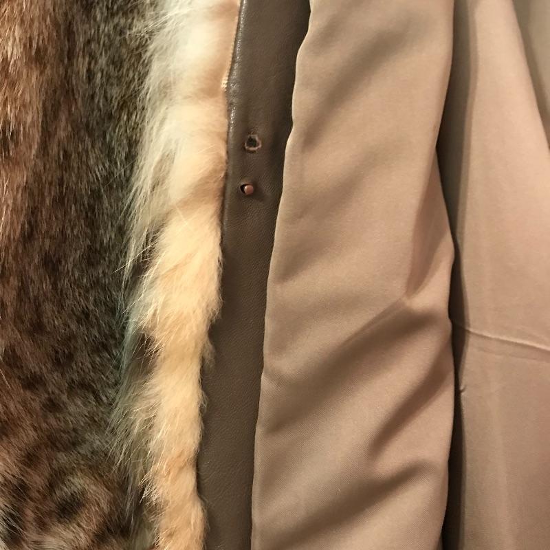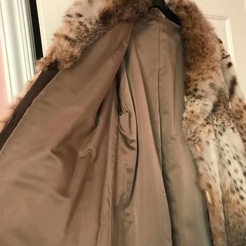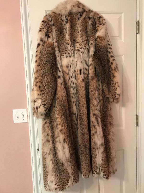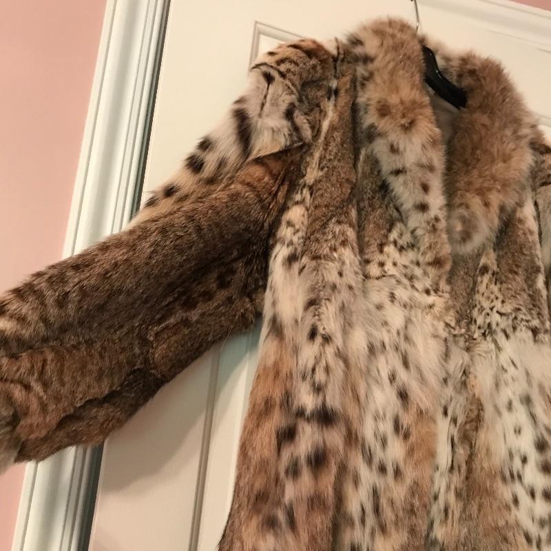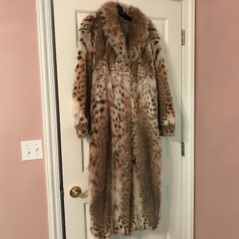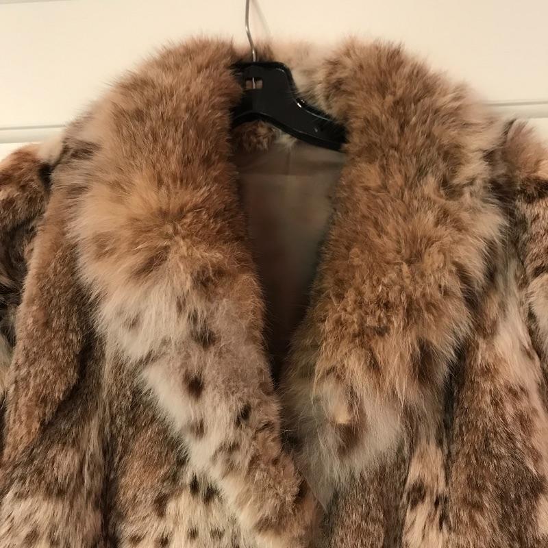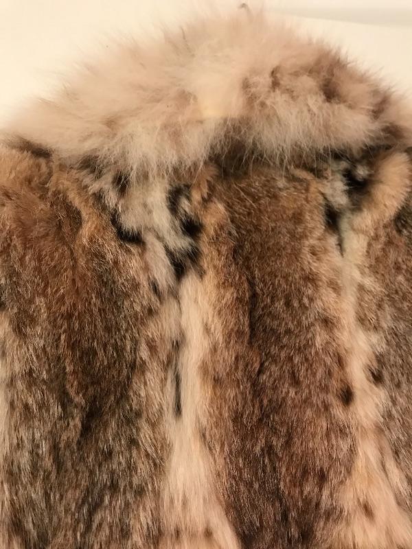 Head-turning spotted long fur coat that is in fabulous condition. This coat appears to be a medium/large size. There appears to be some leather trim where the lining meets the fur with two buttons that need replacement. The lining is in very good shape with a couple of spots where the fur line lays off a little bit, see images. The coat has two side pockets and a lovely collar to keep you warm. No designer information was found.