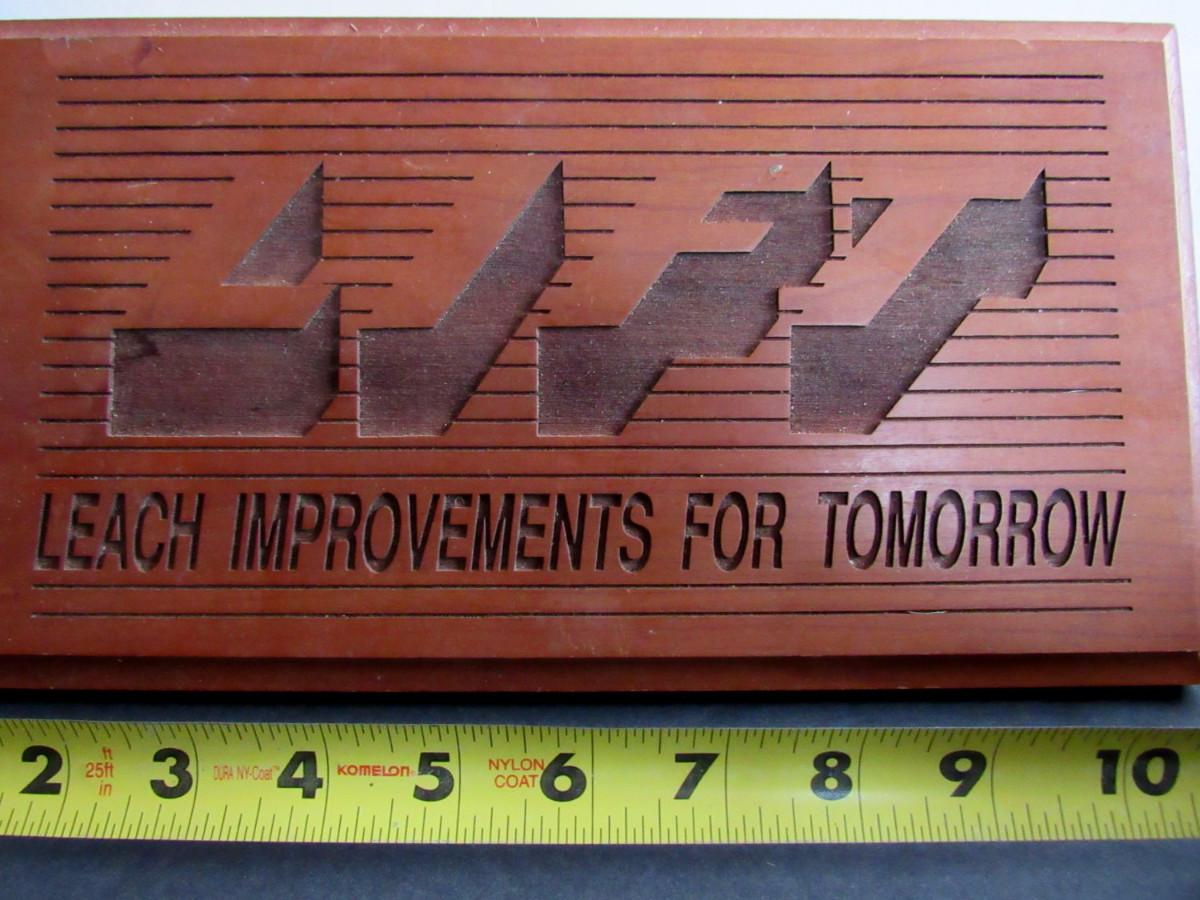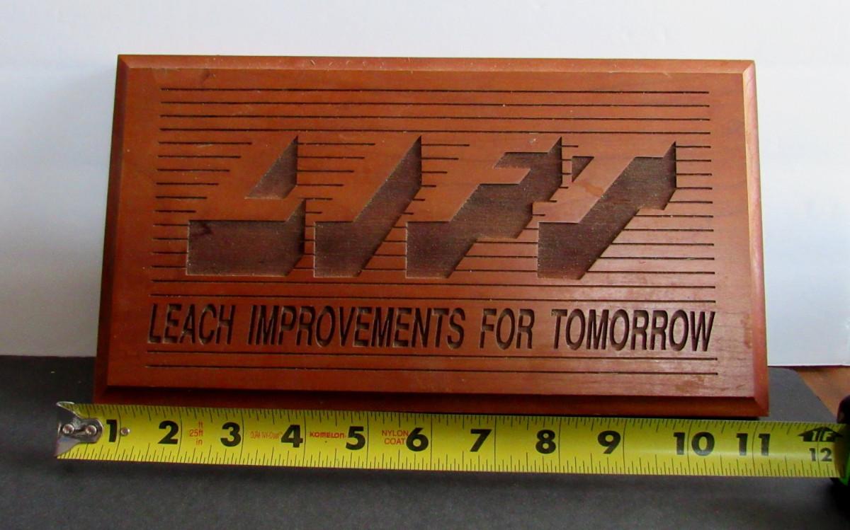 Lot 372: Old Wood Plaque: Leach Improvements For Tomorrow, Leach Co