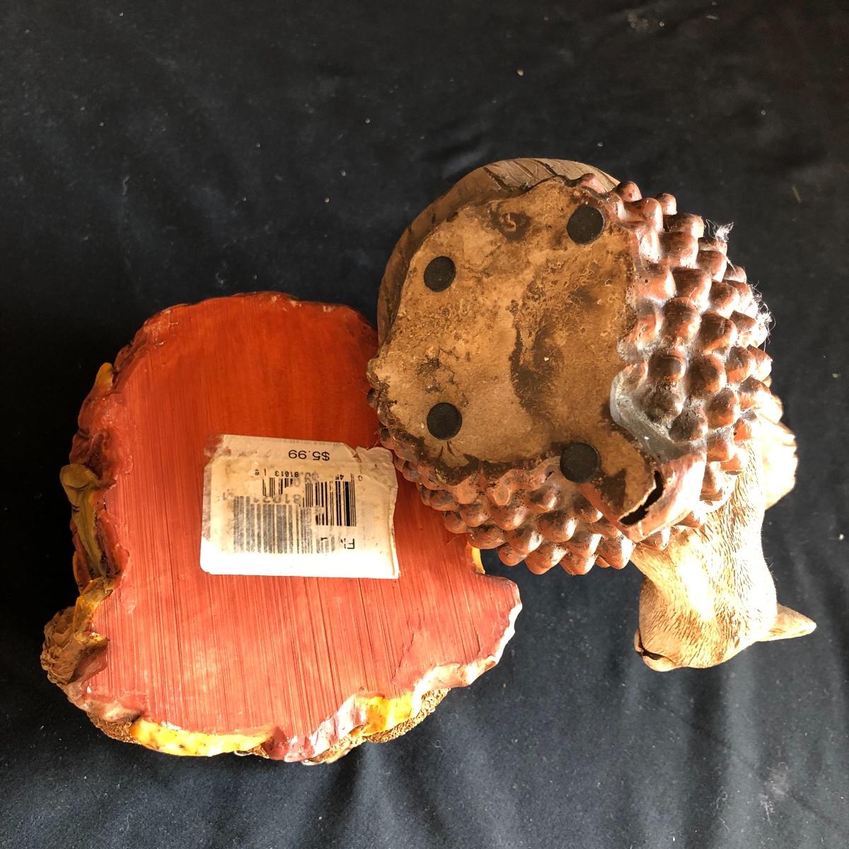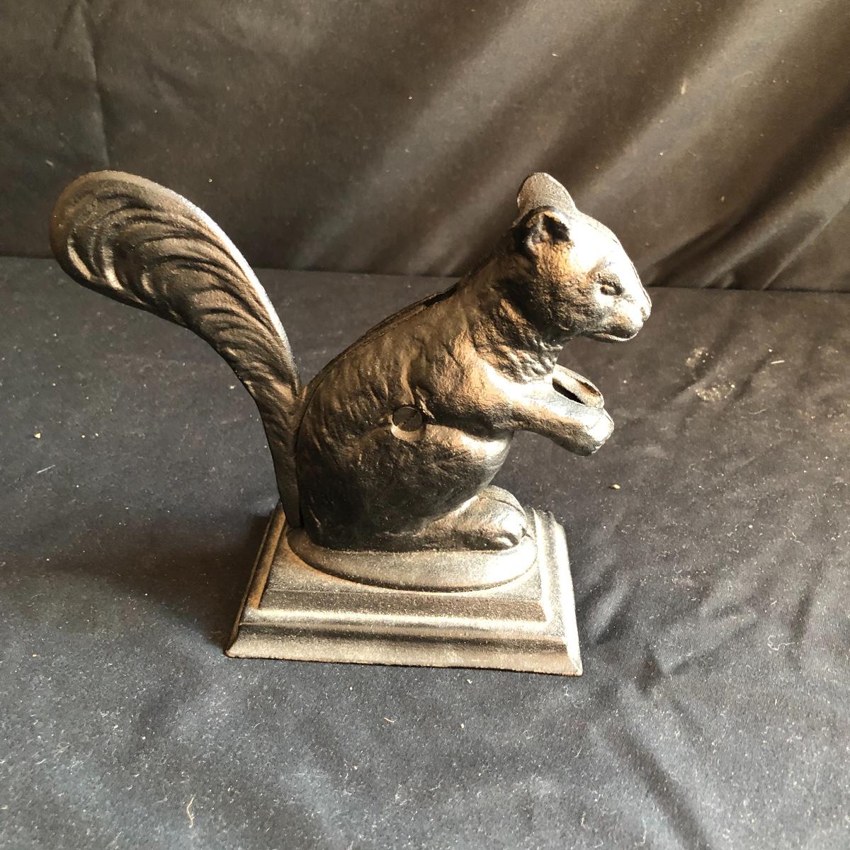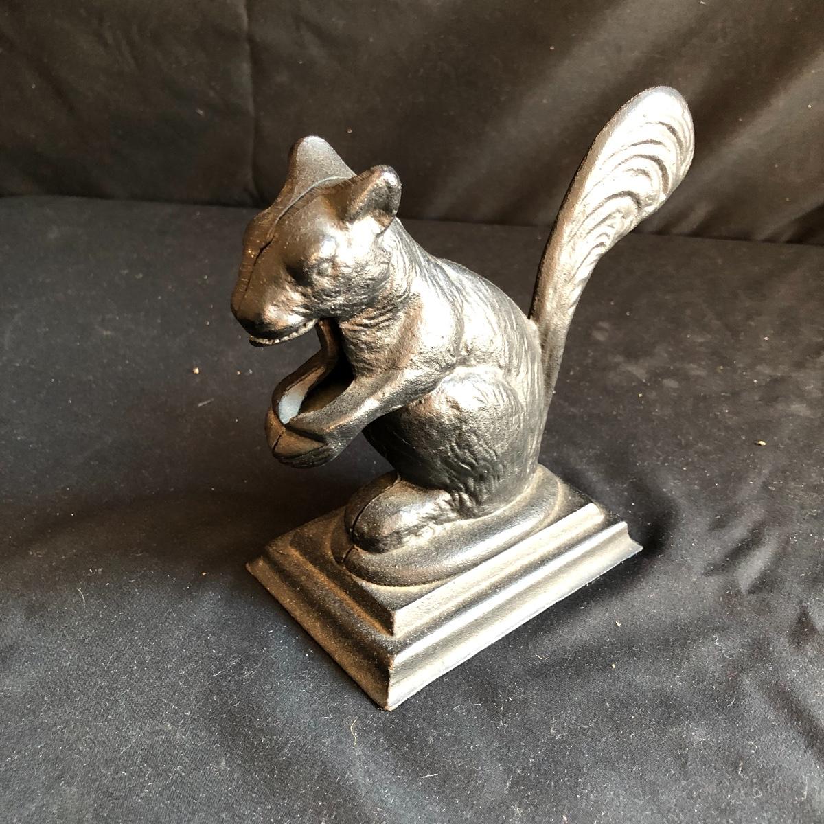You will go nuts over this lot. Lot includes metal squirrel nut cracker, two resin figurines, ceramic salt and pepper shakers, wooden bowl and a slide nutcracker. Metal squirrel measures 3” x 4.5” x 6”.
