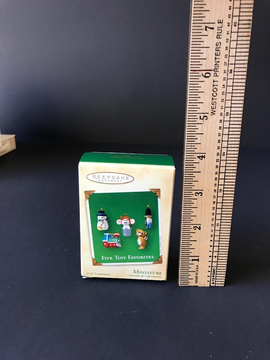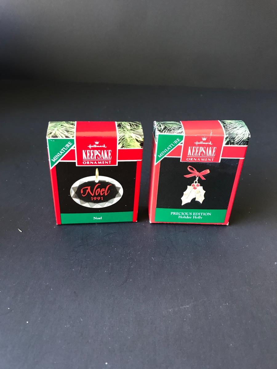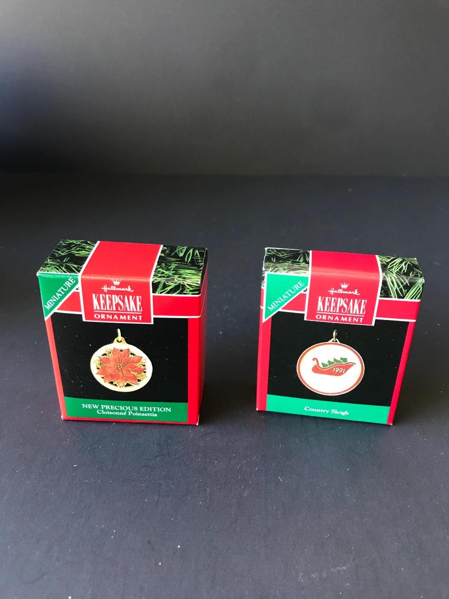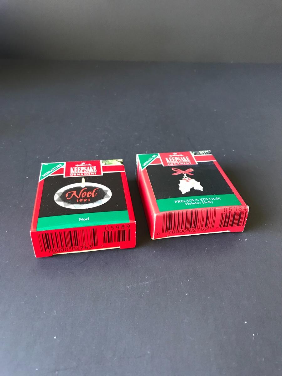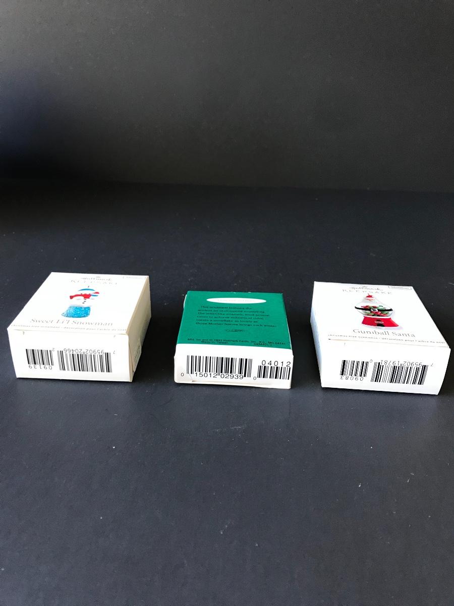 Miniature Christmas Ornaments - Hallmark Keepsake. All Holiday items in this auction are as-seen. The client collected a lot of holiday pieces and some are new in box, some were displayed once and come with original box, and some have been displayed and come with no box. They are all pre-owned in some fashion and have been stored in an attic or on shelf in library. Please see all pictures. The pictures show condition, measurements if taken, and what is included in the lot. Due to the large amount that we photograph and the time frame, we are not always able to take measurements. All items unless noted, are pre-owned and have been used. Thank you
