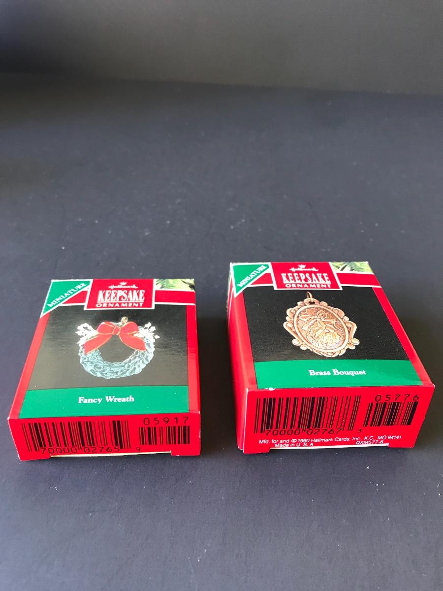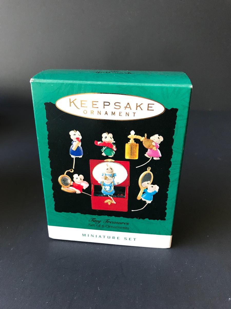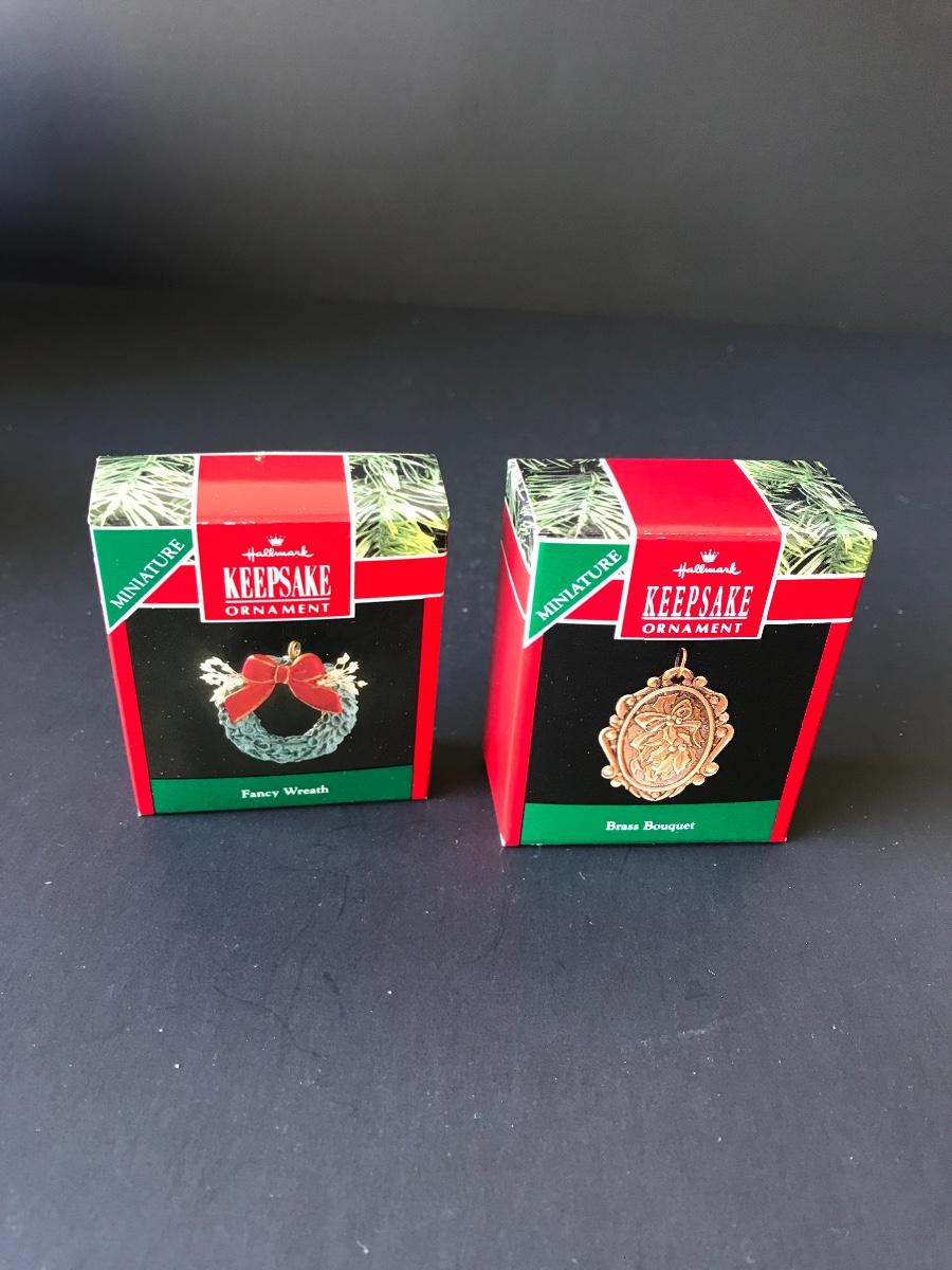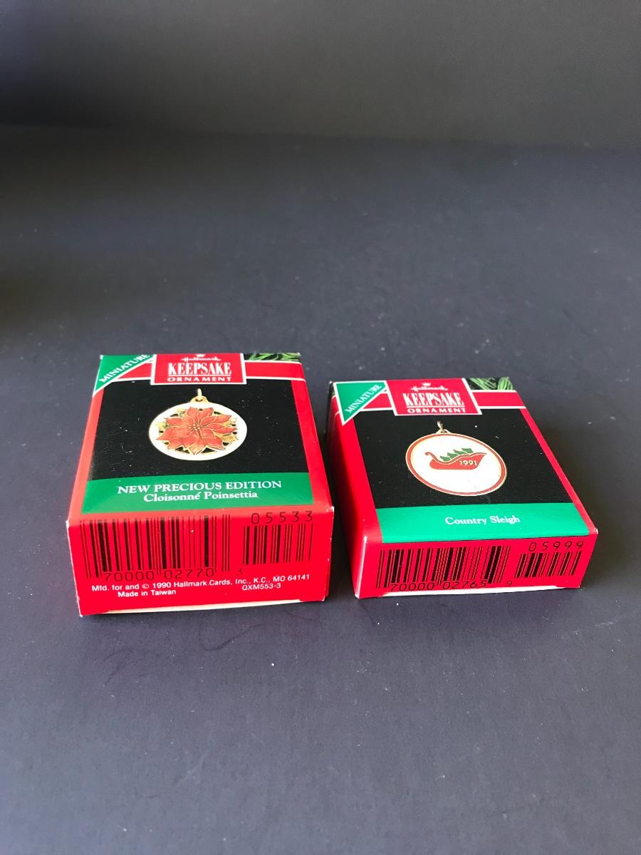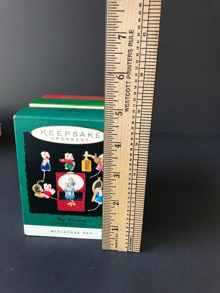Miniature Christmas Ornaments - Hallmark Keepsake. All Holiday items in this auction are as-seen. The client collected a lot of holiday pieces and some are new in box, some were displayed once and come with original box, and some have been displayed and come with no box. They are all pre-owned in some fashion and have been stored in an attic or on shelf in library. Please see all pictures. The pictures show condition, measurements if taken, and what is included in the lot. Due to the large amount that we photograph and the time frame, we are not always able to take measurements. All items unless noted, are pre-owned and have been used. Thank you