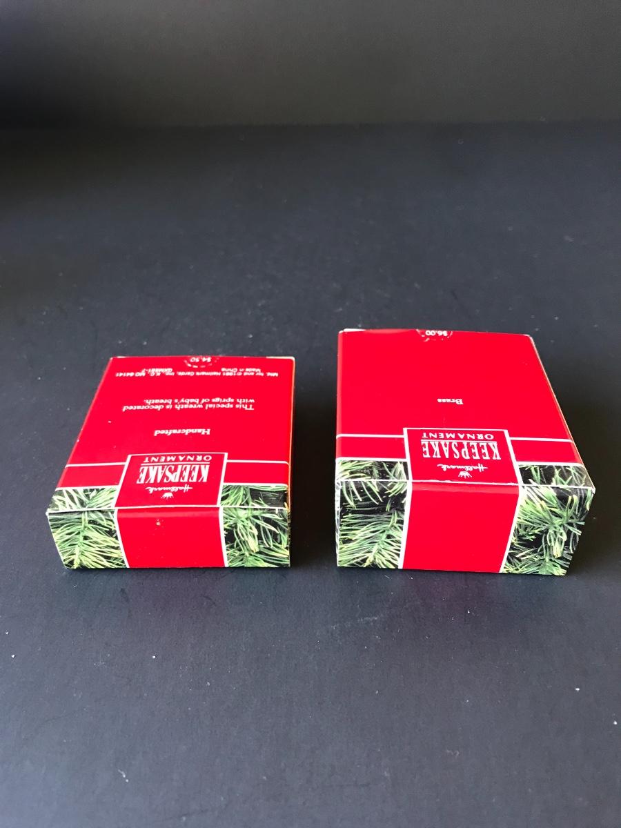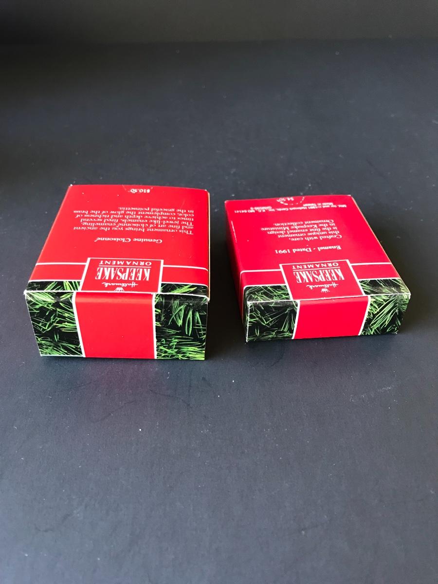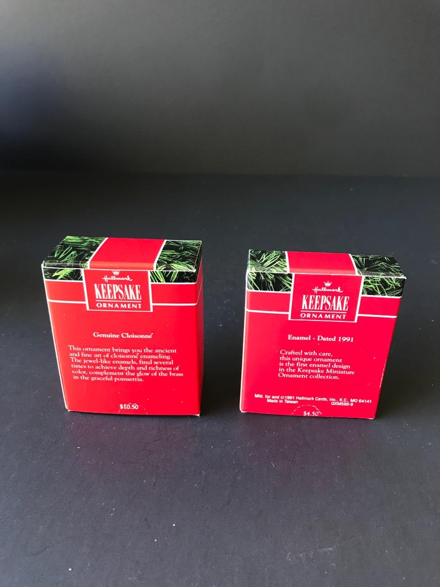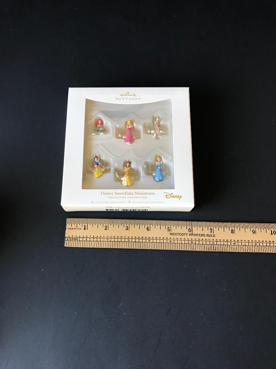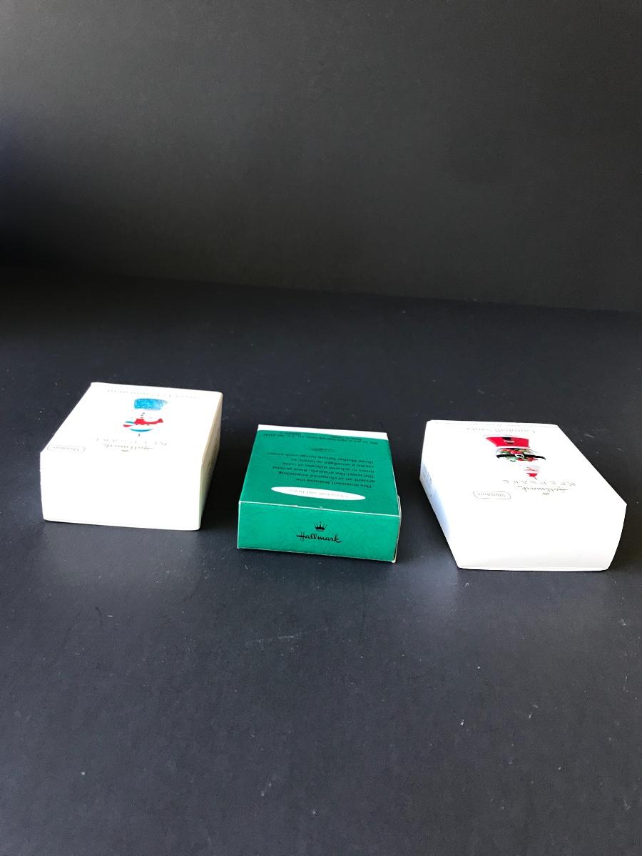 Miniature Christmas Ornaments - Hallmark Keepsake. All Holiday items in this auction are as-seen. The client collected a lot of holiday pieces and some are new in box, some were displayed once and come with original box, and some have been displayed and come with no box. They are all pre-owned in some fashion and have been stored in an attic or on shelf in library. Please see all pictures. The pictures show condition, measurements if taken, and what is included in the lot. Due to the large amount that we photograph and the time frame, we are not always able to take measurements. All items unless noted, are pre-owned and have been used. Thank you
