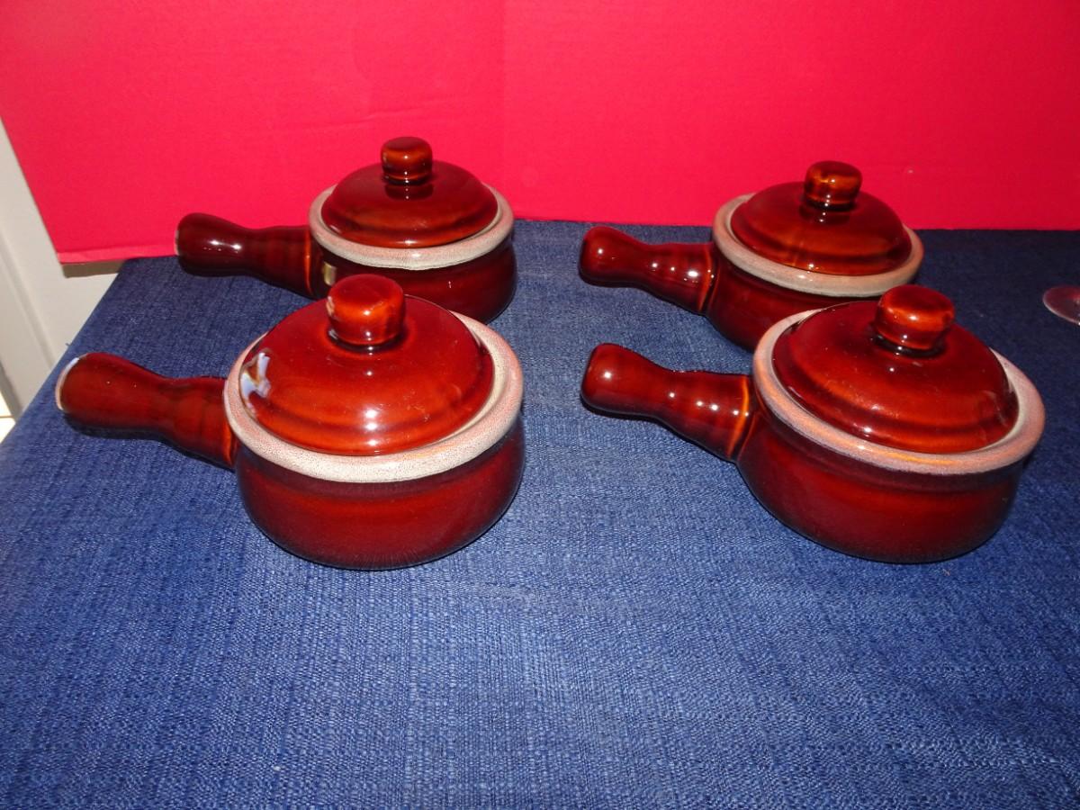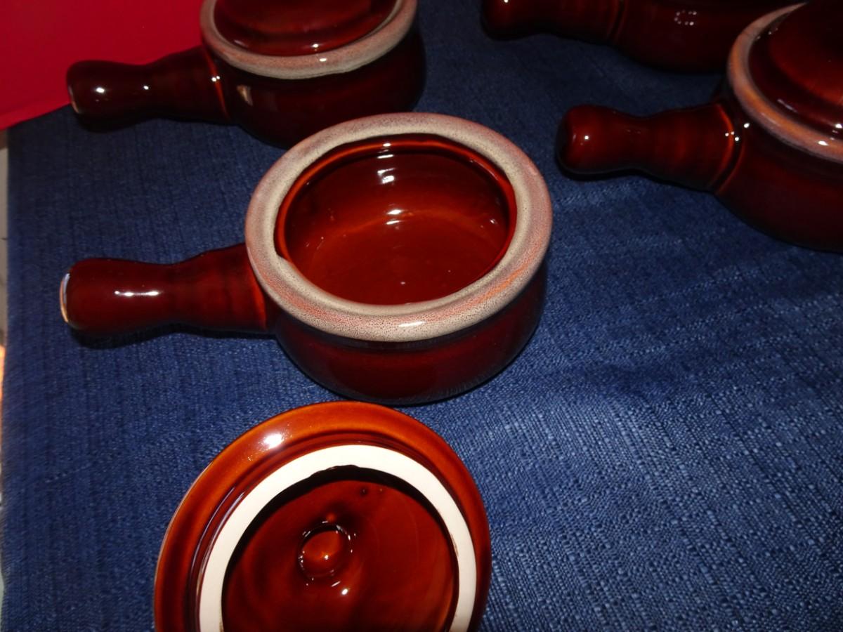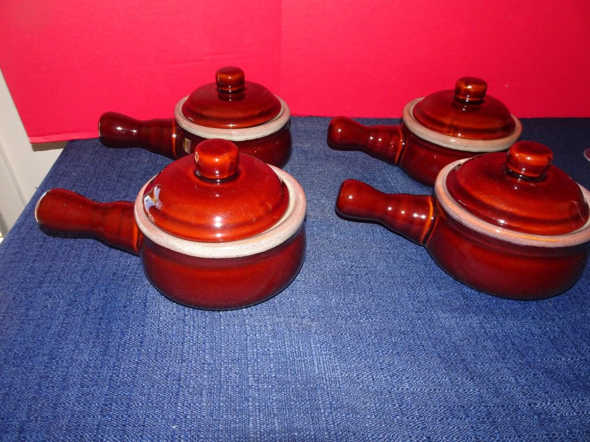 LOT 373. STONEWARE HANDLE SOUP BOWLS