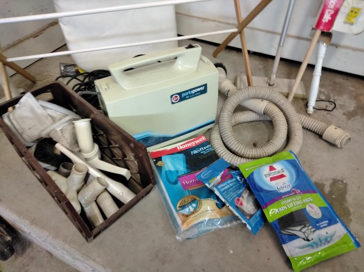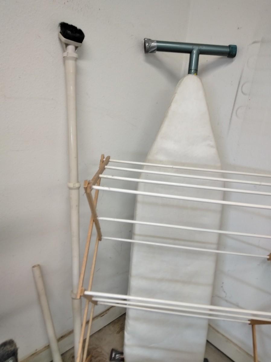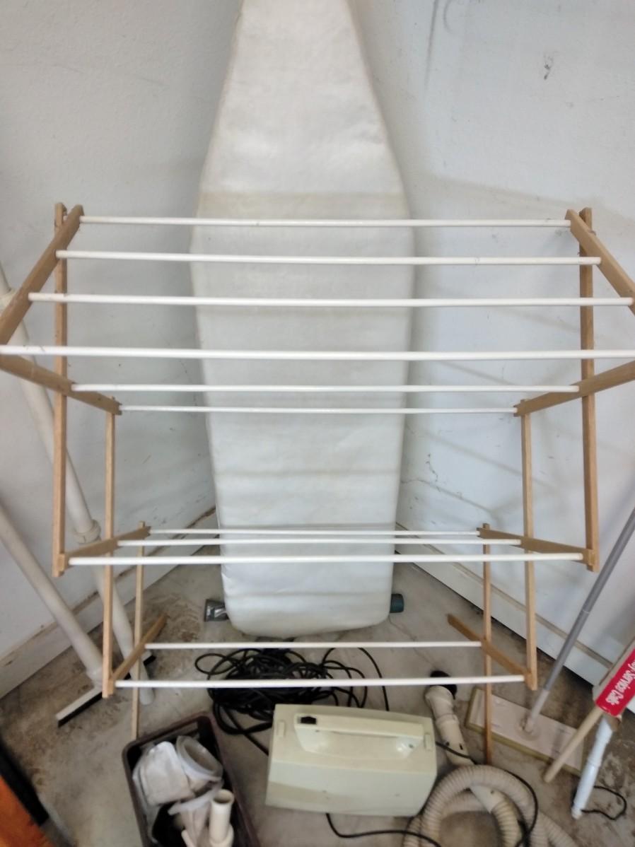 SMALL HOOVER CANISTER VACUUM, IRONING BOARD, CLOTHES DRYING RACK AND MORE