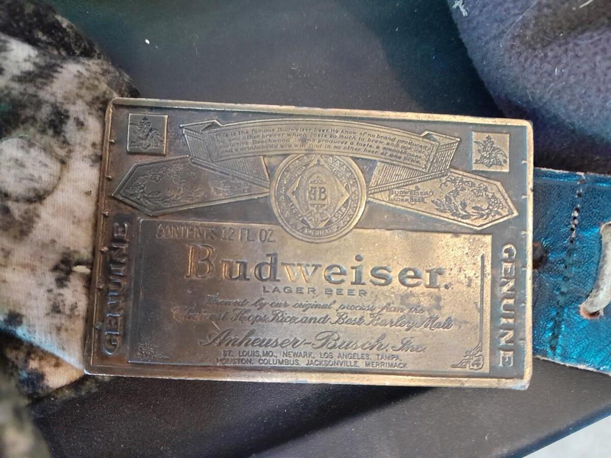 LOT 373 CAMOFLAUGE WINTER GEAR, CAPS, BUDWEISER BELT BUCKLE AND MORE (WS)