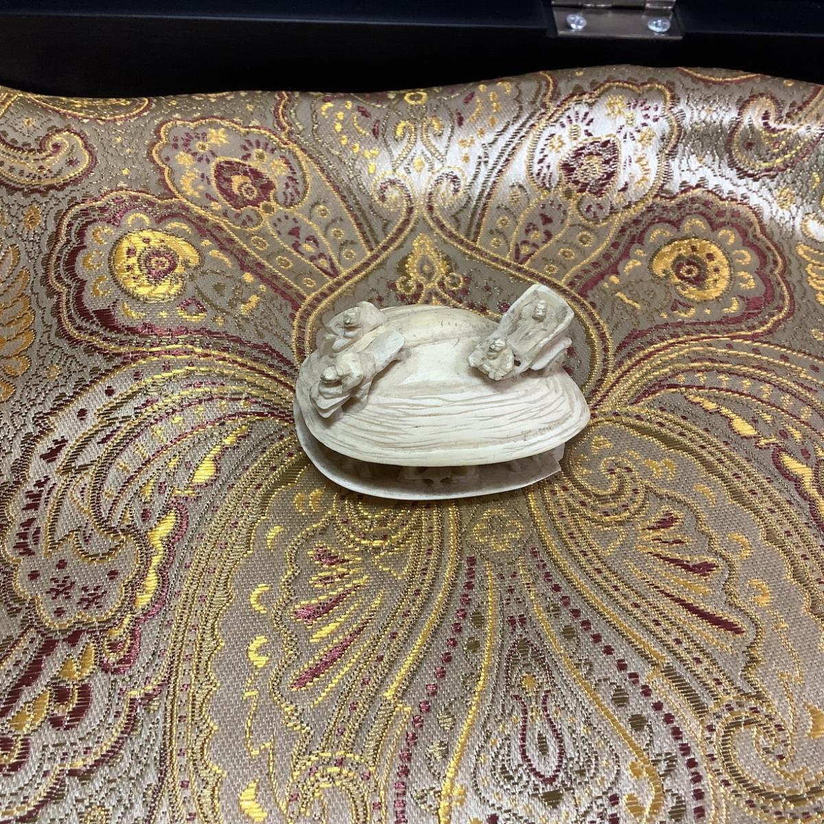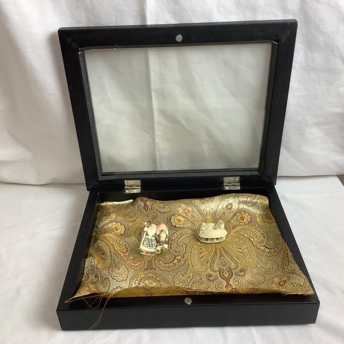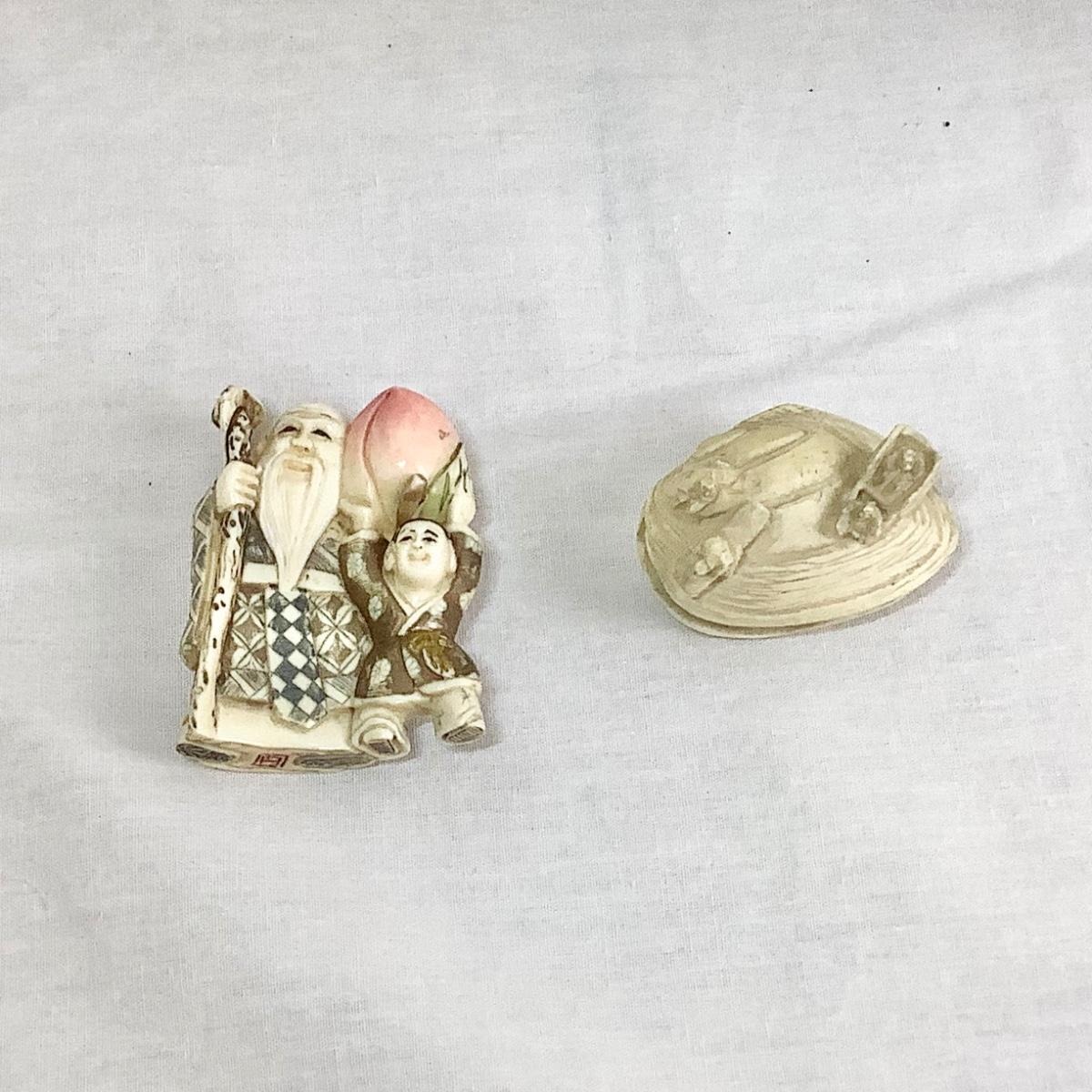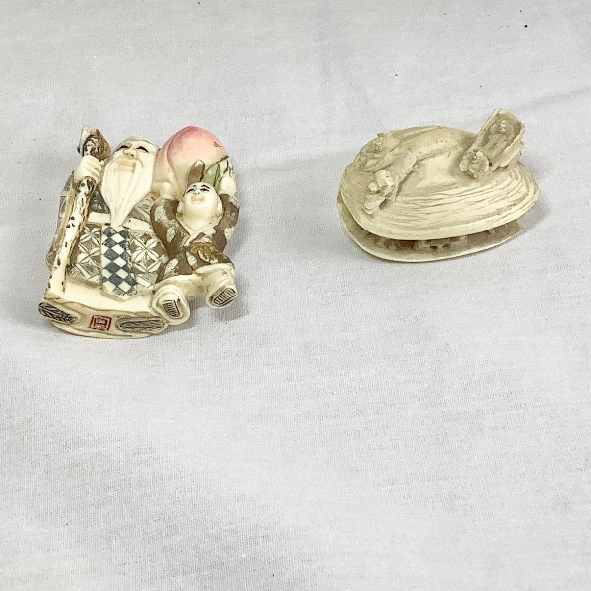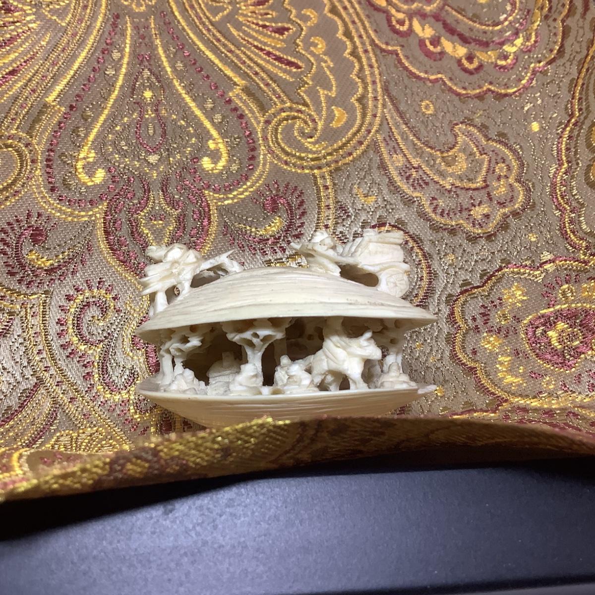 Lot 373 Japanese Carved Celluloid Clam Shell Diorama & Japanese Detailed Hand Carved Netsuke Sculpture, Man with Child