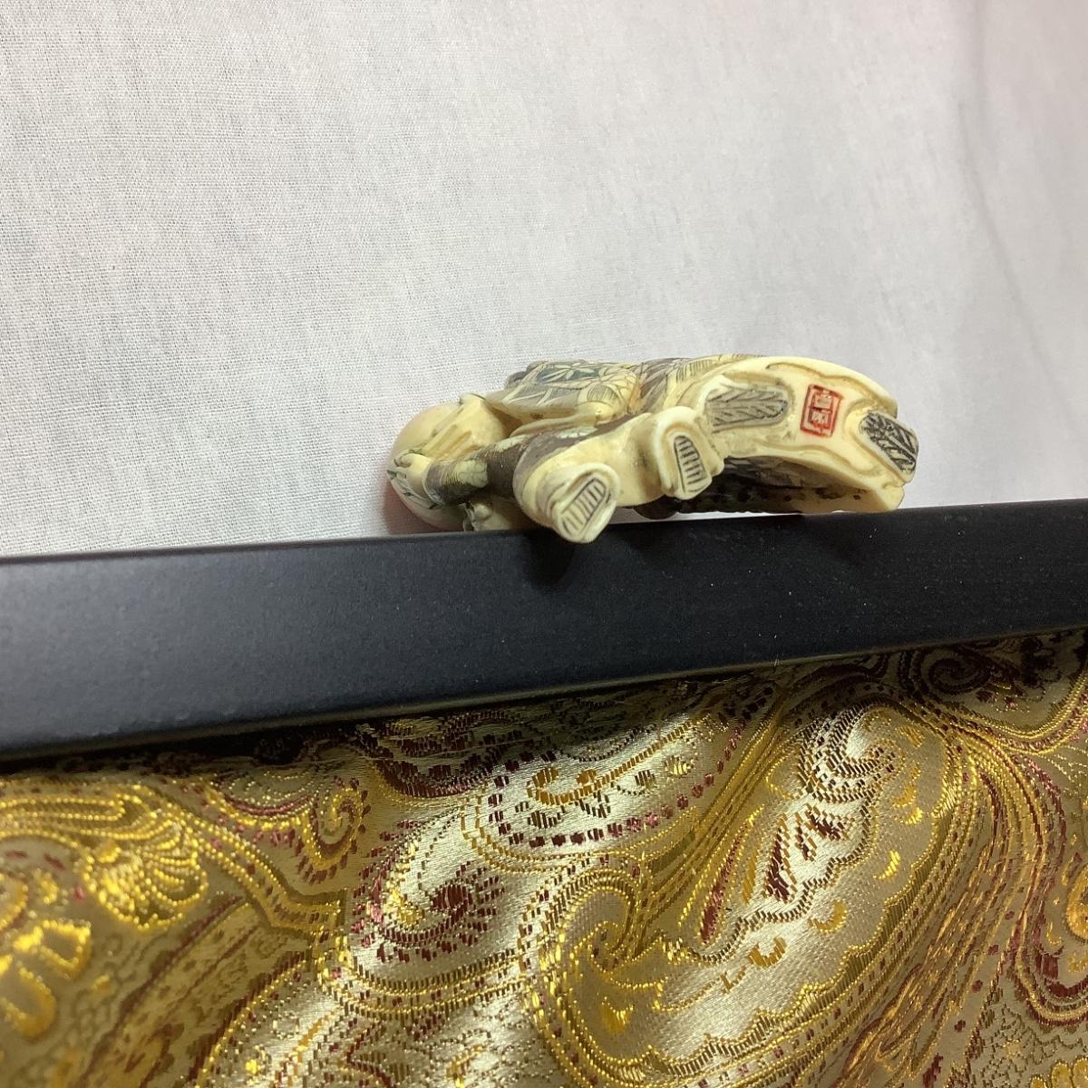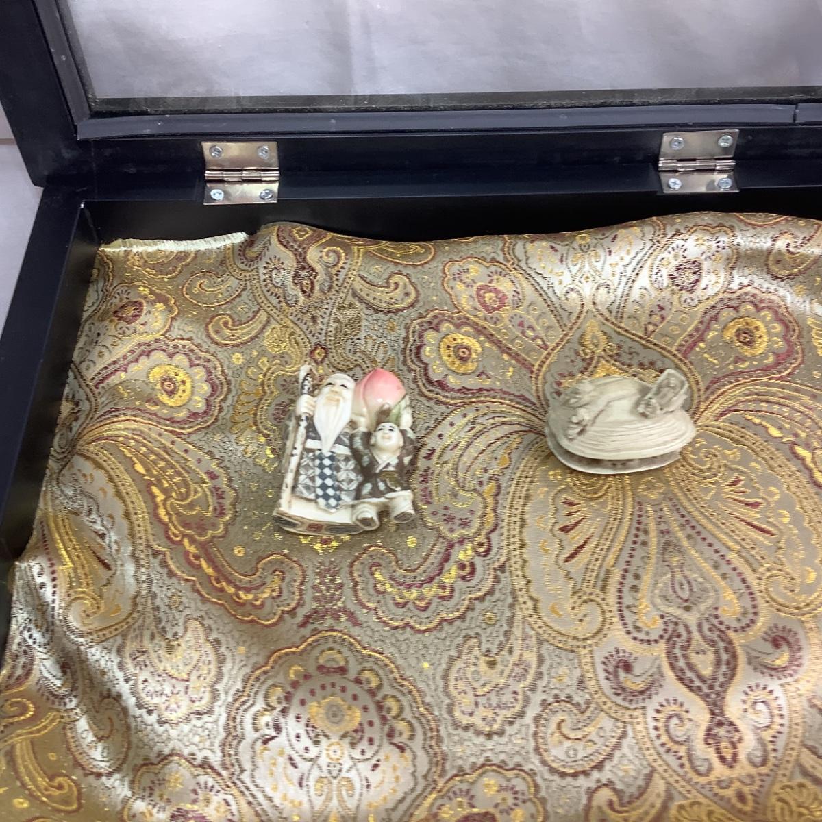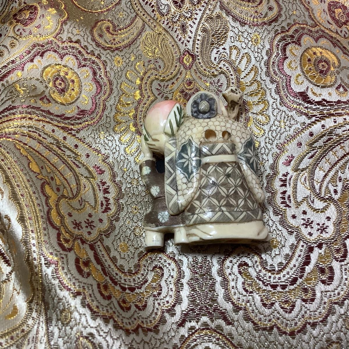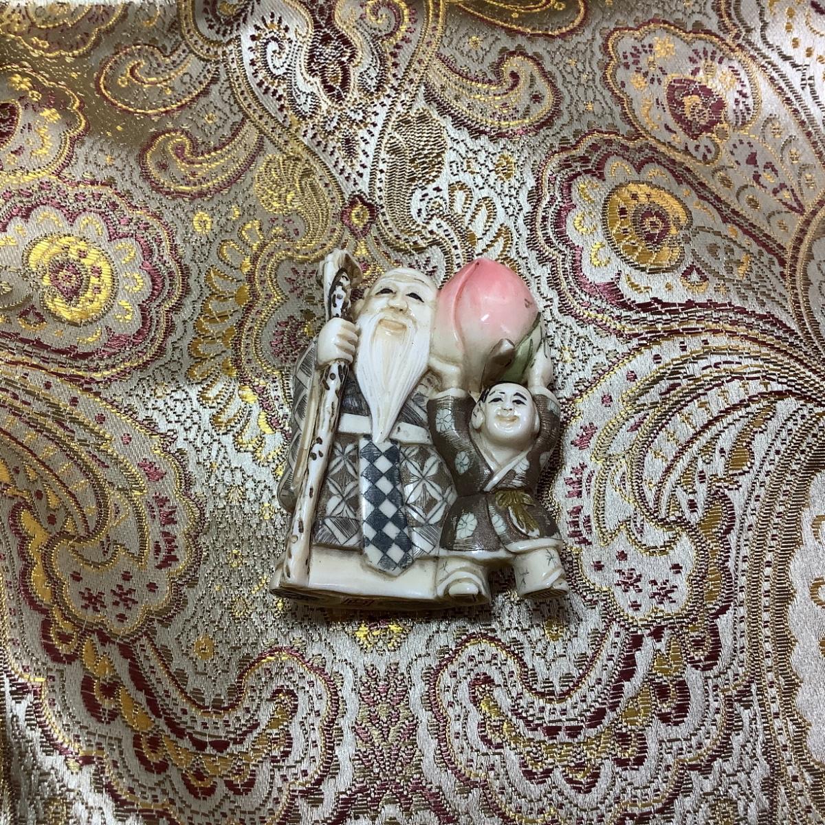 Lot 373 Japanese Carved Celluloid Clam Shell Diorama & Japanese Detailed Hand Carved Netsuke Sculpture, Man with Child
