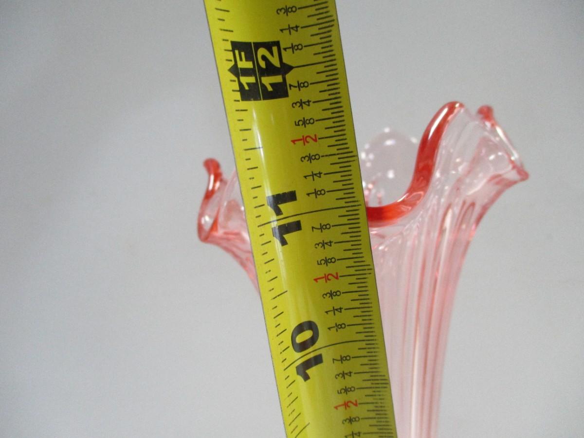 Pink Ribbed Art Glass Swung Vase w/ Fluted Top 11 3/4"