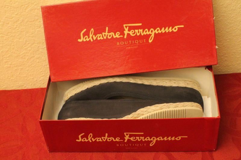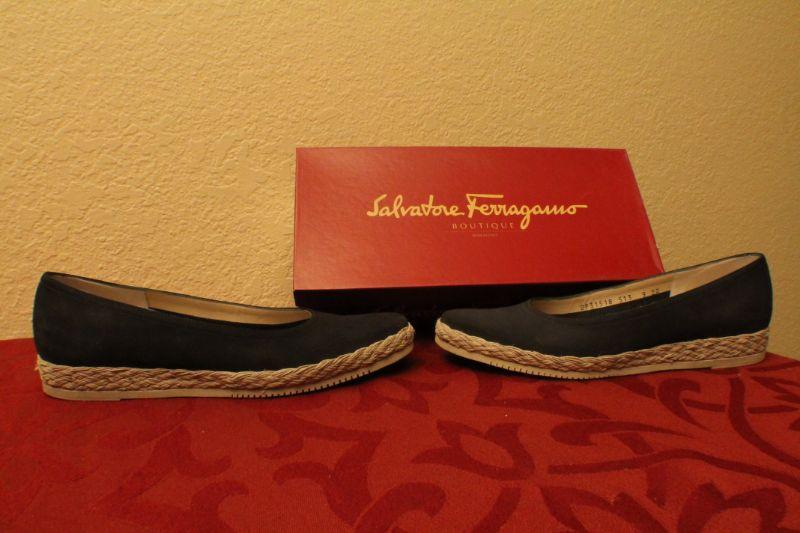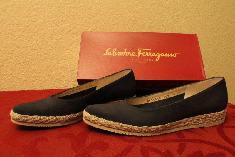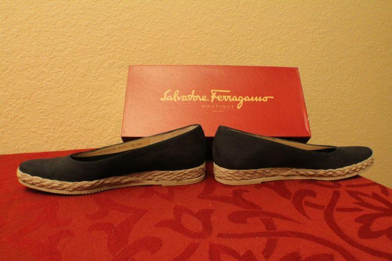LOT #374: Salvatore Ferragamo Navy Blue Nabuck Leather Flats SIZE 9 AA