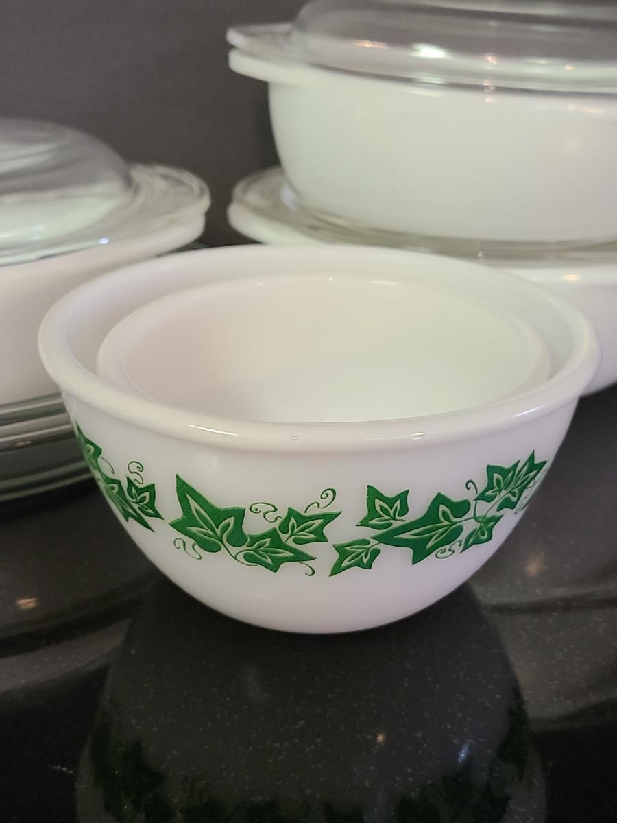 Lot 374: Pyrex Milk Glass Covered Casseroles, Pie Plates and More