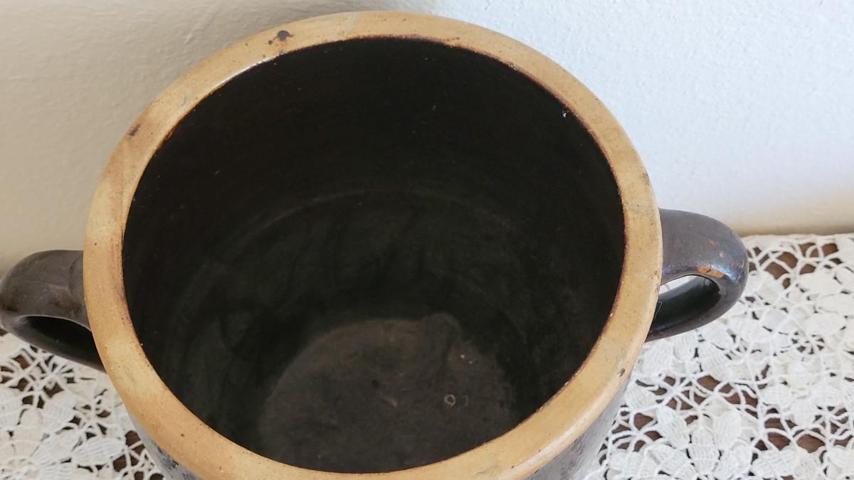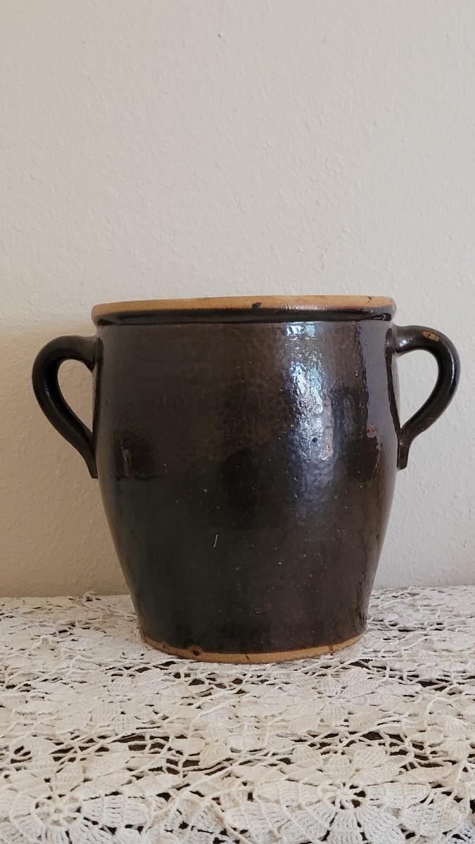 Lot 374: Antique Brown Stoneware Crock with Double Handles