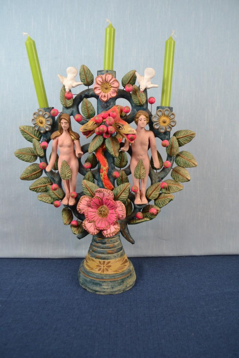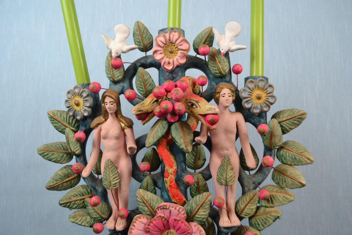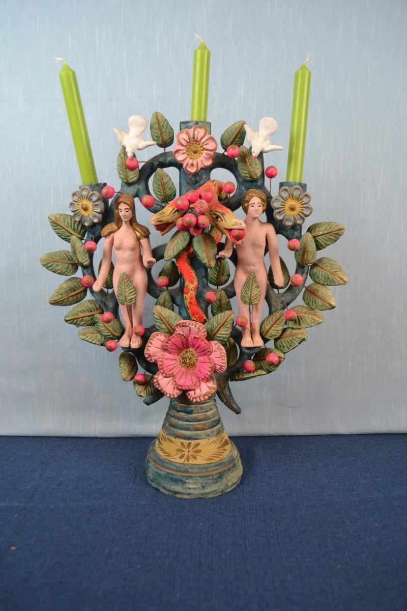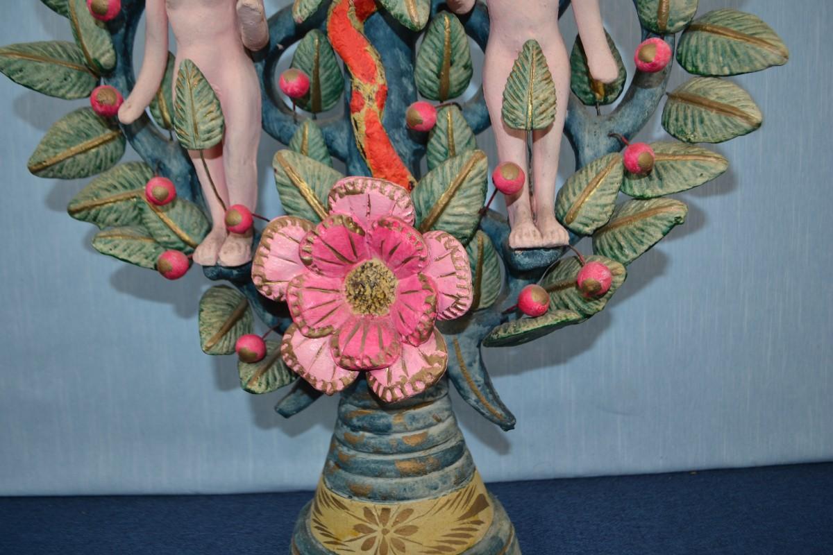 21" TALL X 17" WIDE MEXICAN FOLK ART CLAY ADAM AND EVE CLAY STATUE/CANDLE HOLDER
