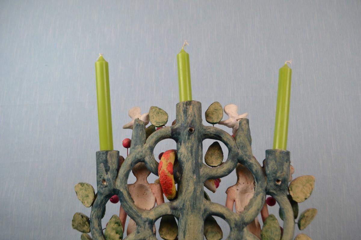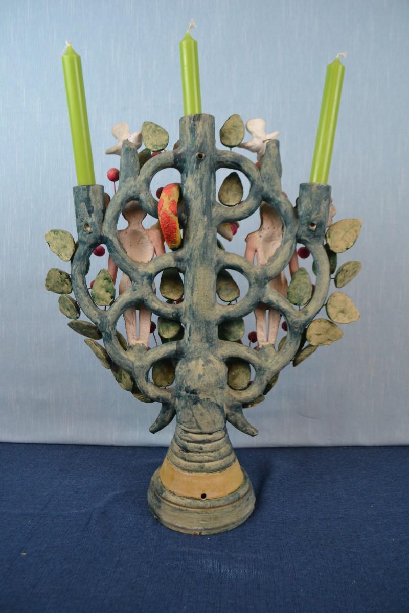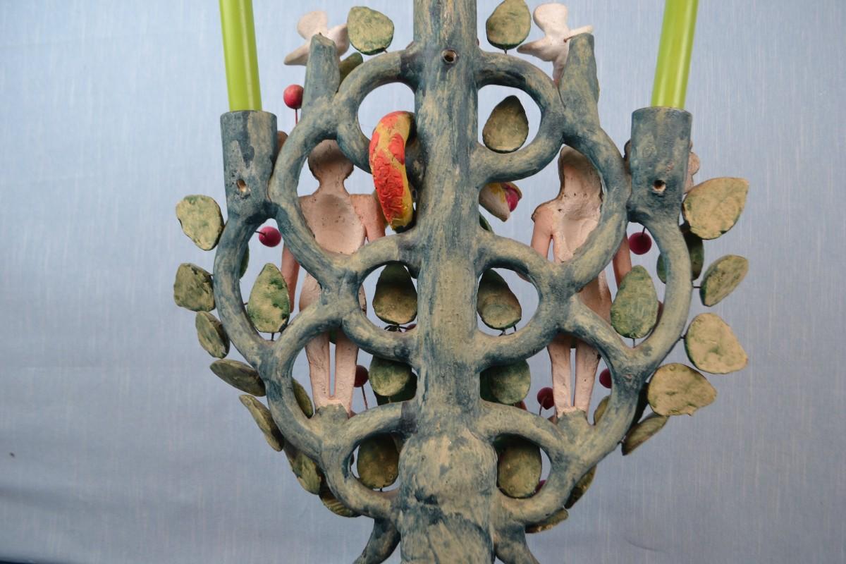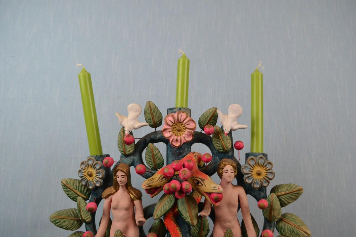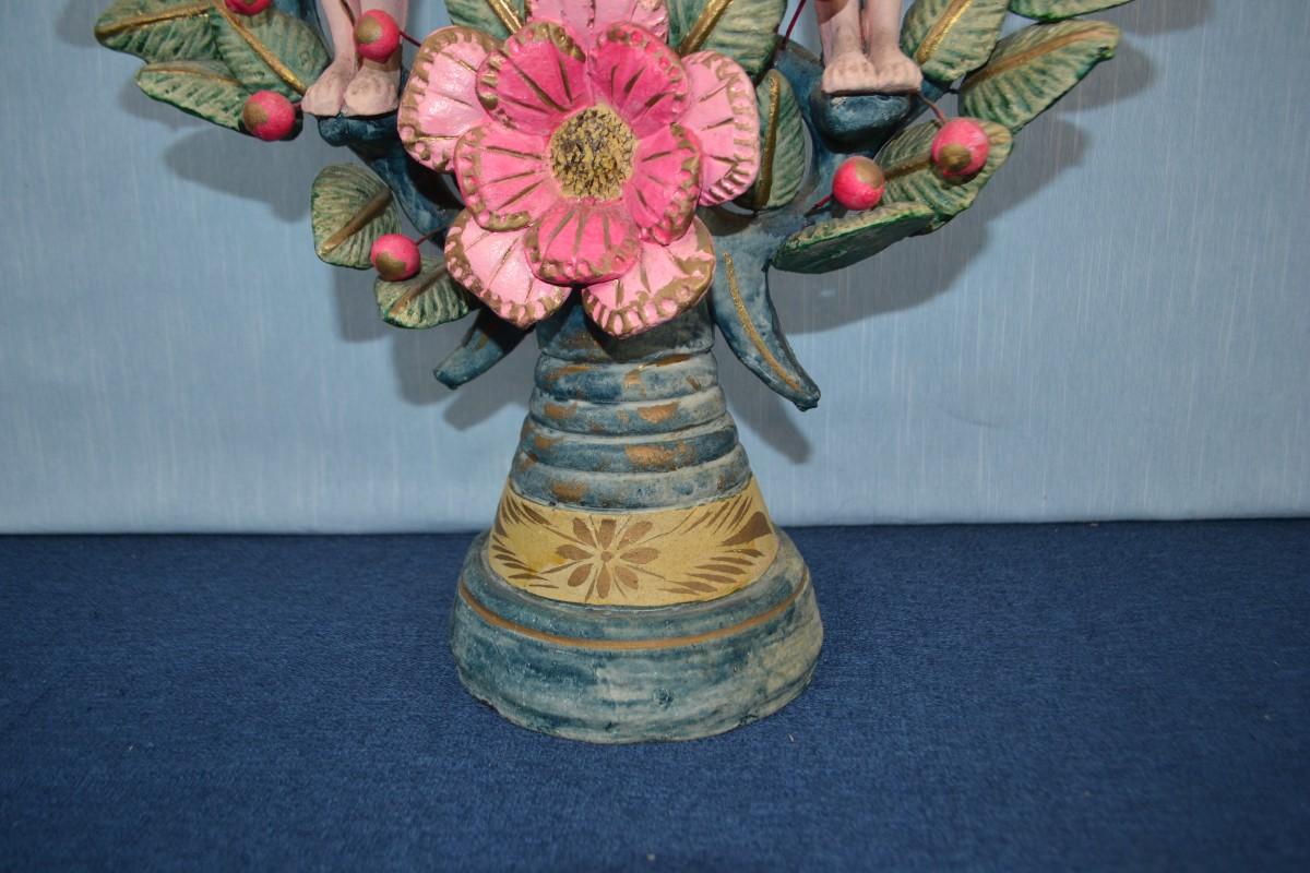 21" TALL X 17" WIDE MEXICAN FOLK ART CLAY ADAM AND EVE CLAY STATUE/CANDLE HOLDER