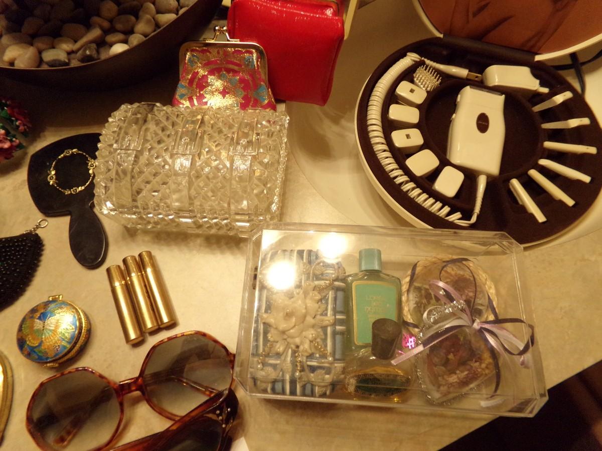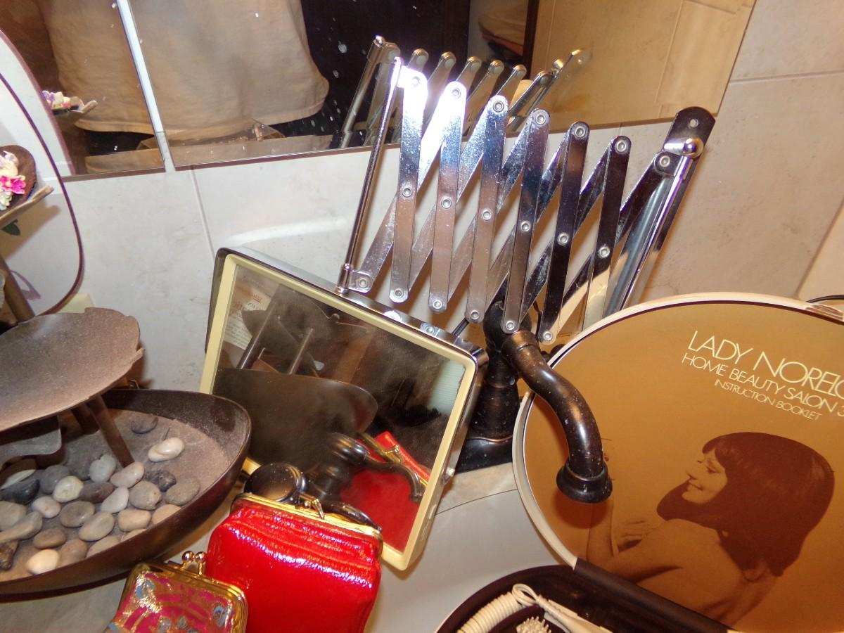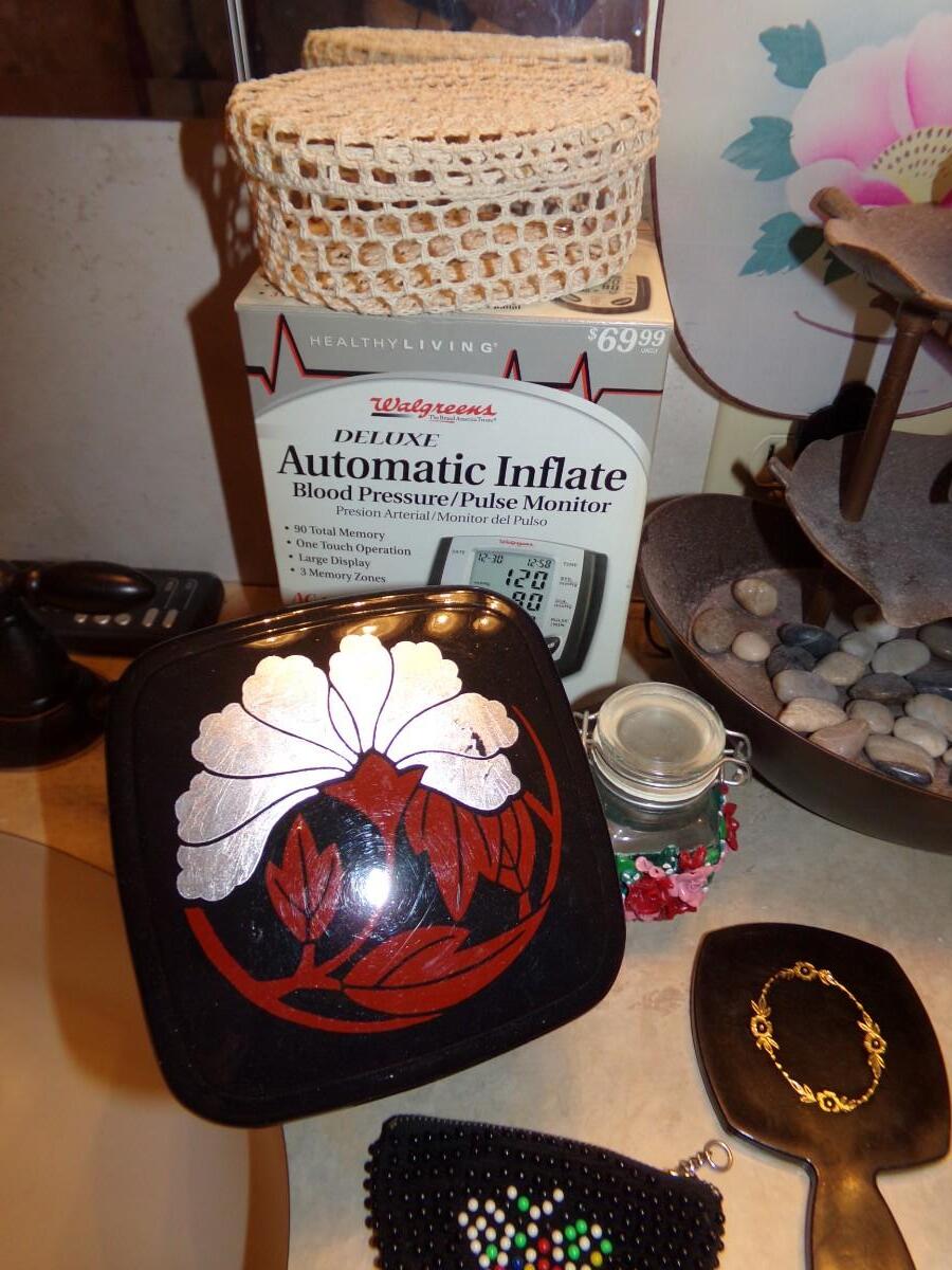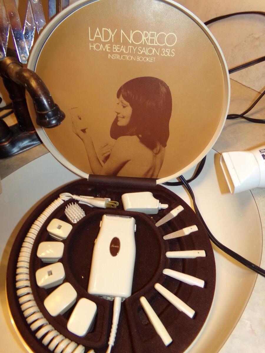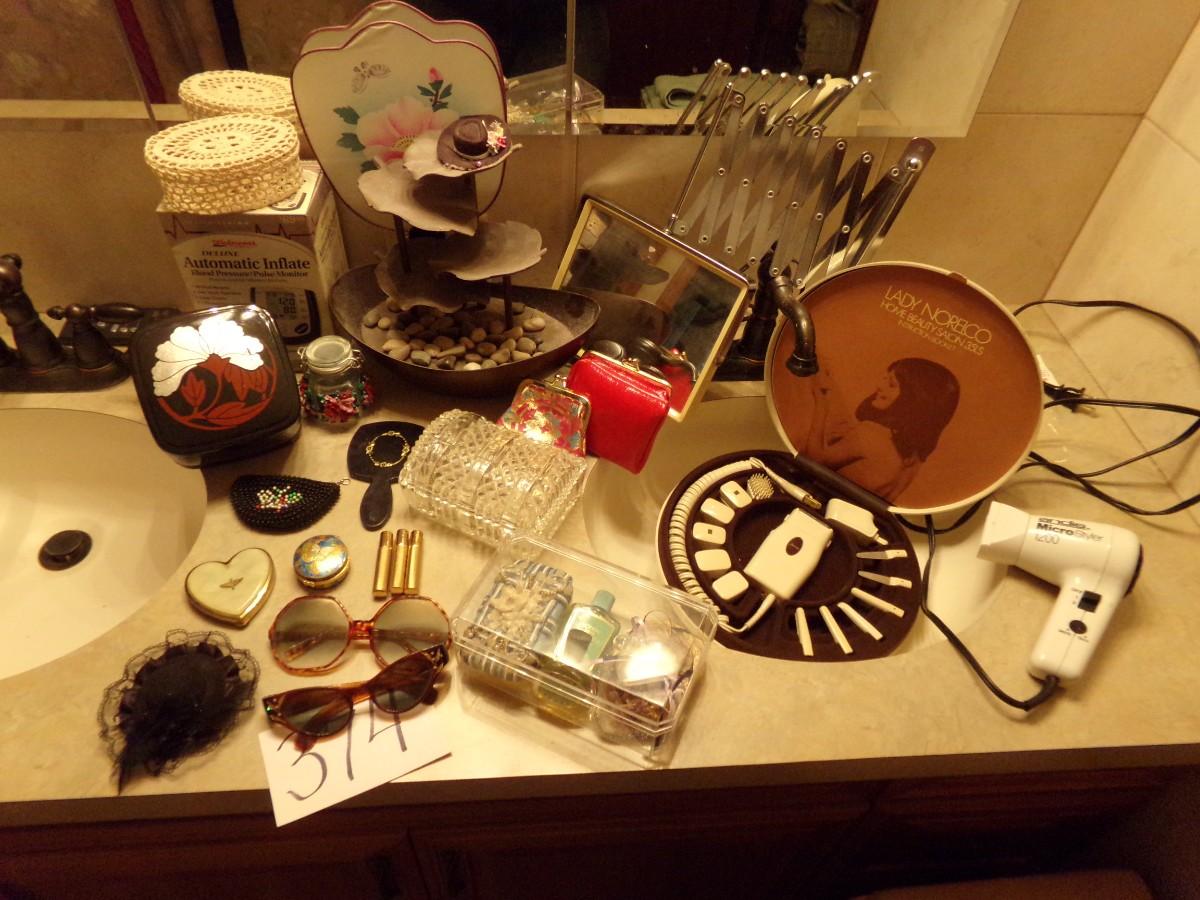 LADY NORELCO HOME BEAUTY SALON 35LS. SUNGLASSES, BLOOD PRESSURE MONITOR, TRINKET BOXES, BLOW DRYER, TABLETOP FOUNTAIN AND MUCH MORE.