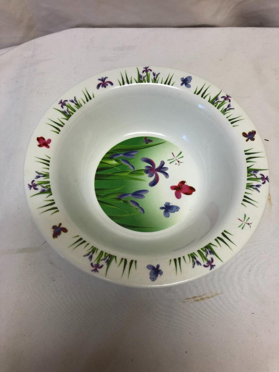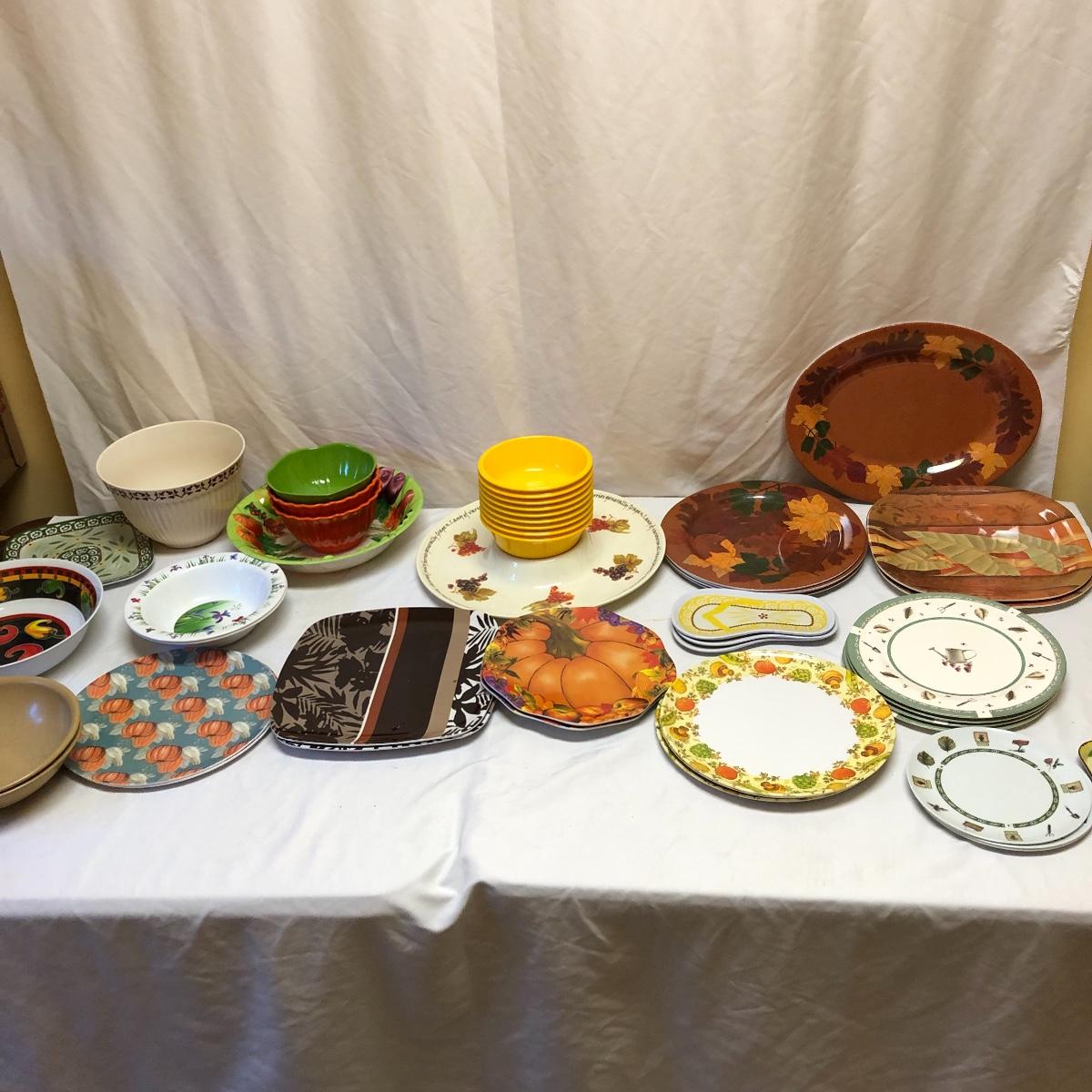 Be ready for your next picnic or child’s party with this collection of melamine. This lot includes bowls, serving bowls, platter, chip and dip bowl and plates in a variety of styles colors and sizes. Largest bowl measures 11.5”D x 2.5” tall.