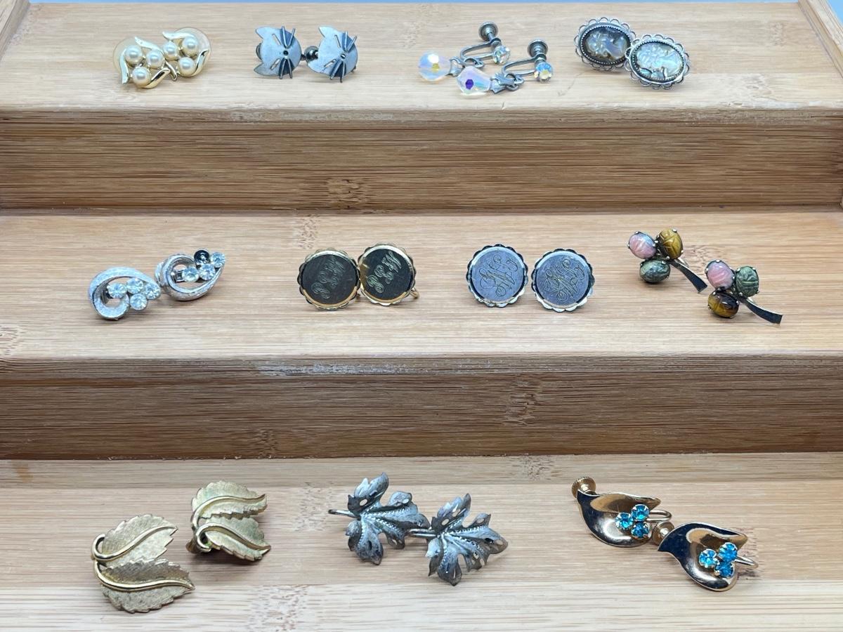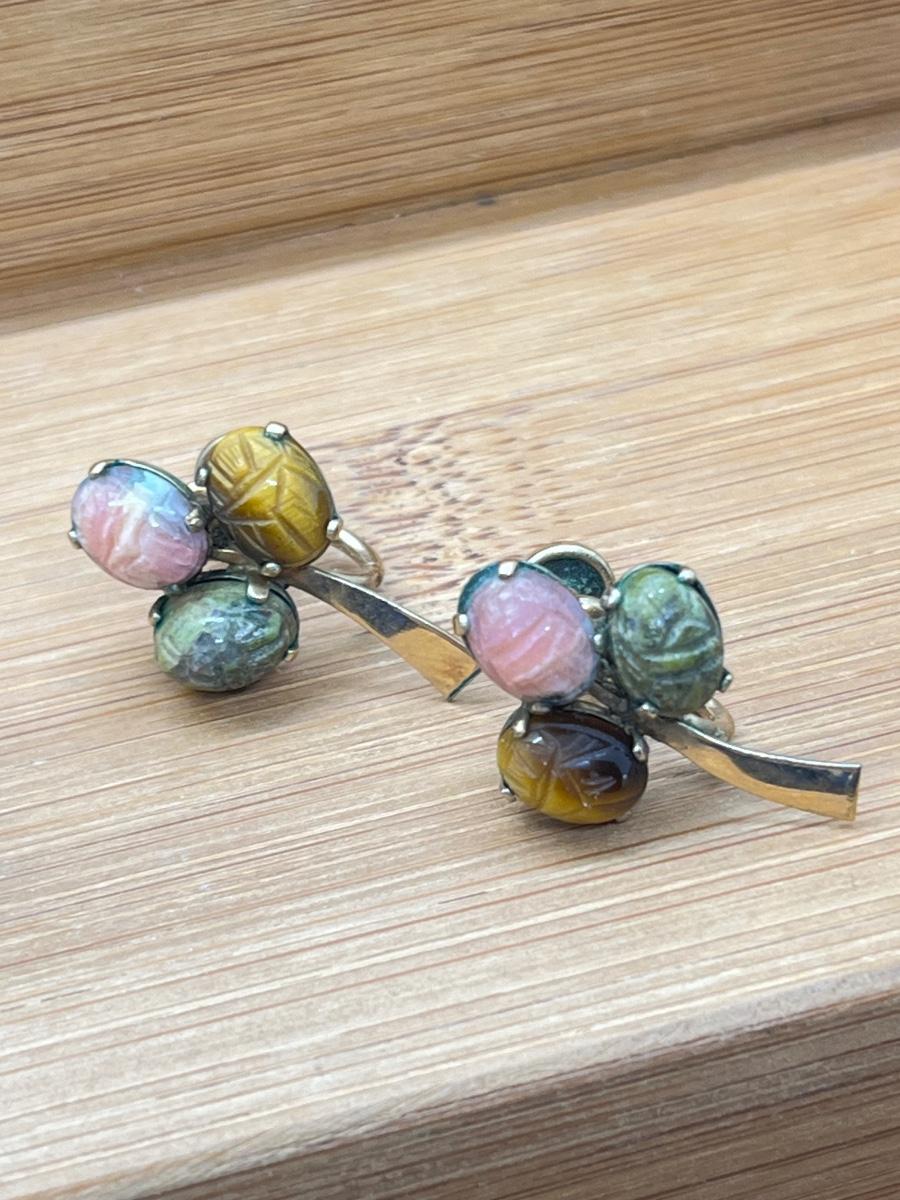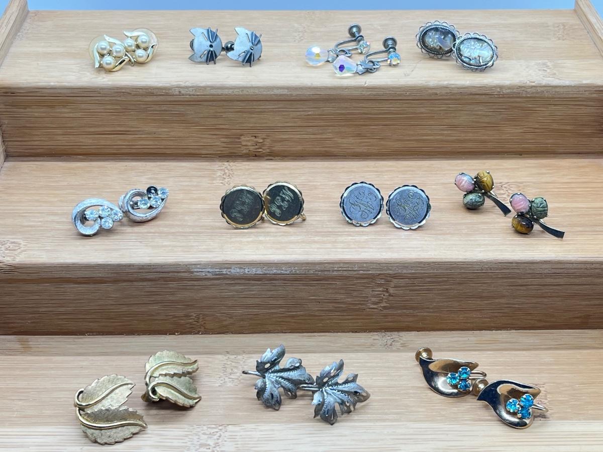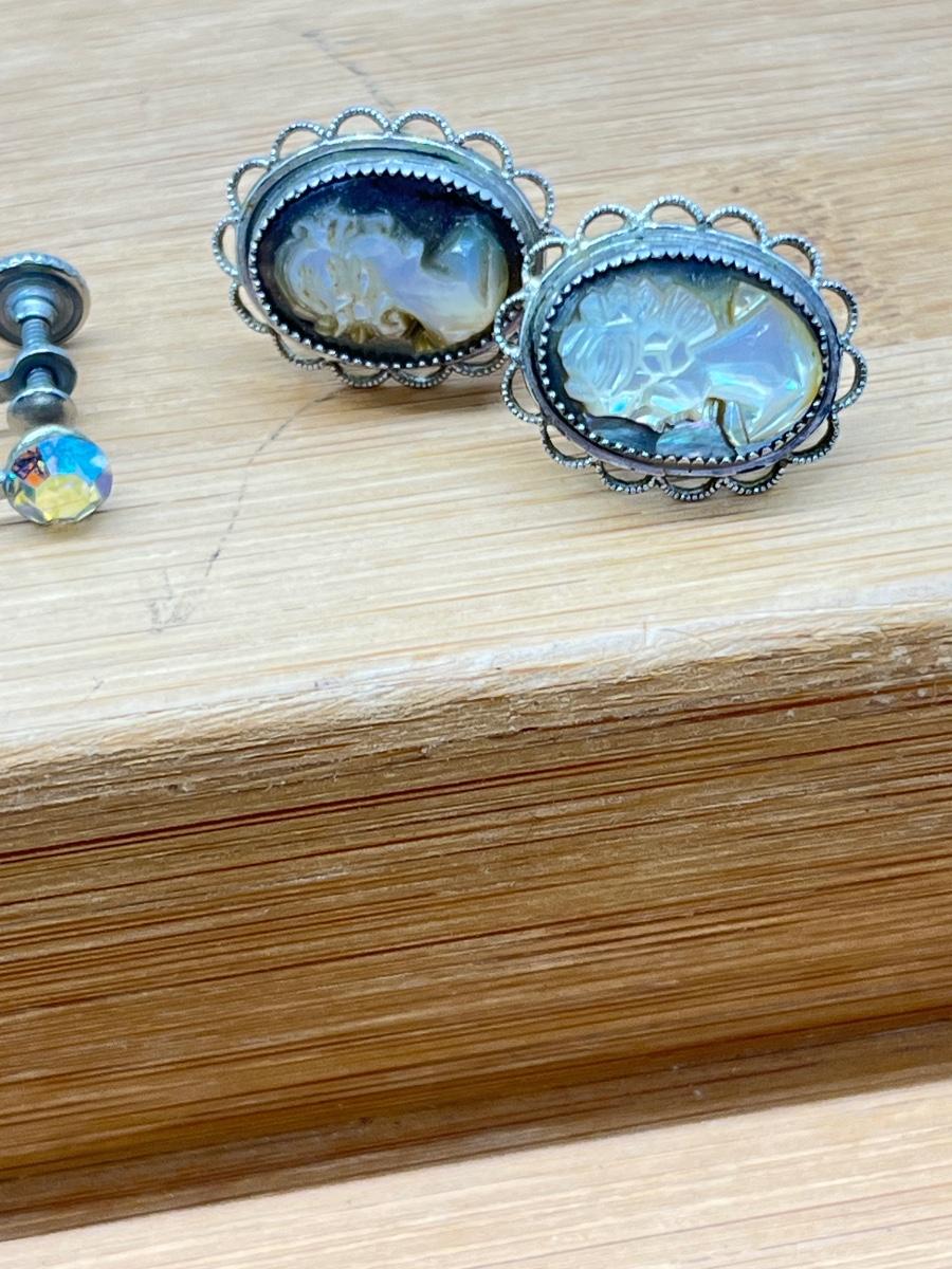 Lot 374J: Clip-On / Screwback Earrings - Scarab, Cameo, Aurora Borealis and More