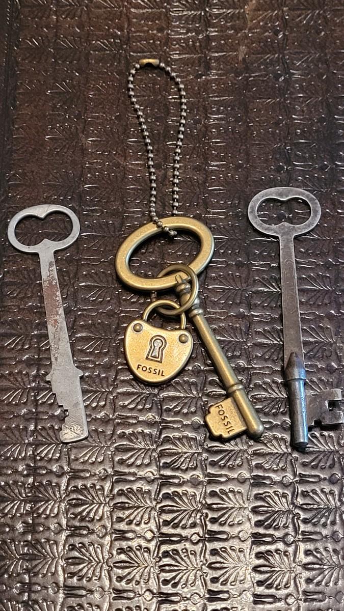 Lot 375: (2) Skelton Keys and a Fossil Skelton Keychain