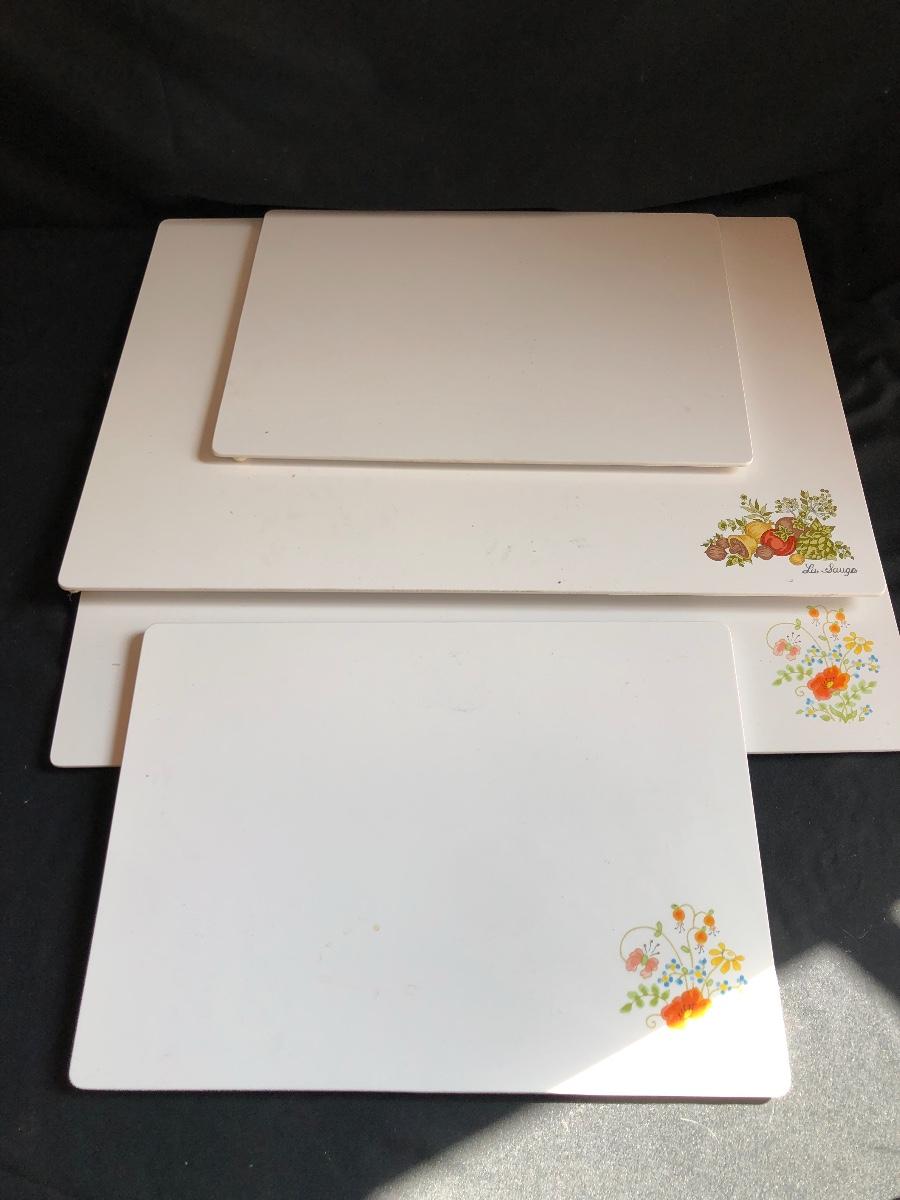 This collection of Corning Ware and Corelle includes two casserole dishes, two serving platters, four cutting boards, bowls, dishes with lids and two carafes. Largest cutting board 14” x 20”.