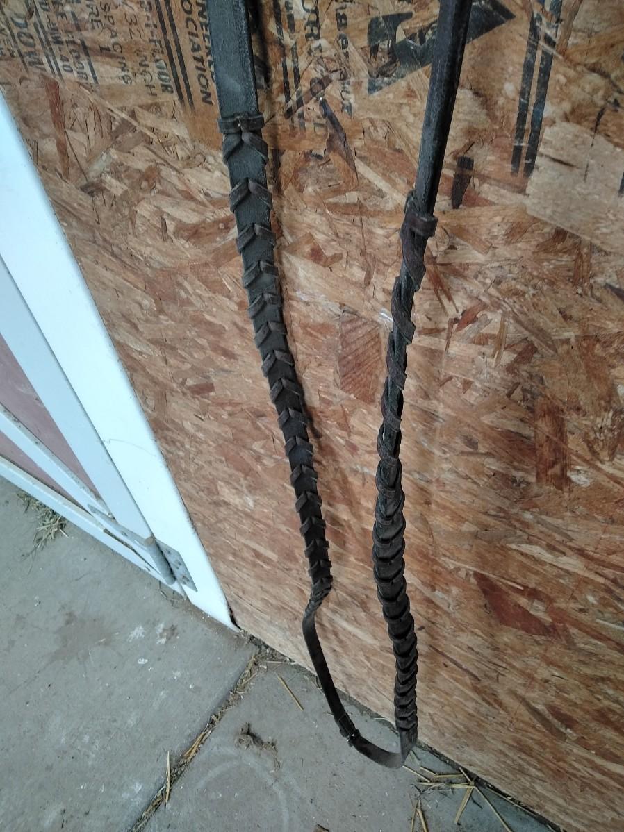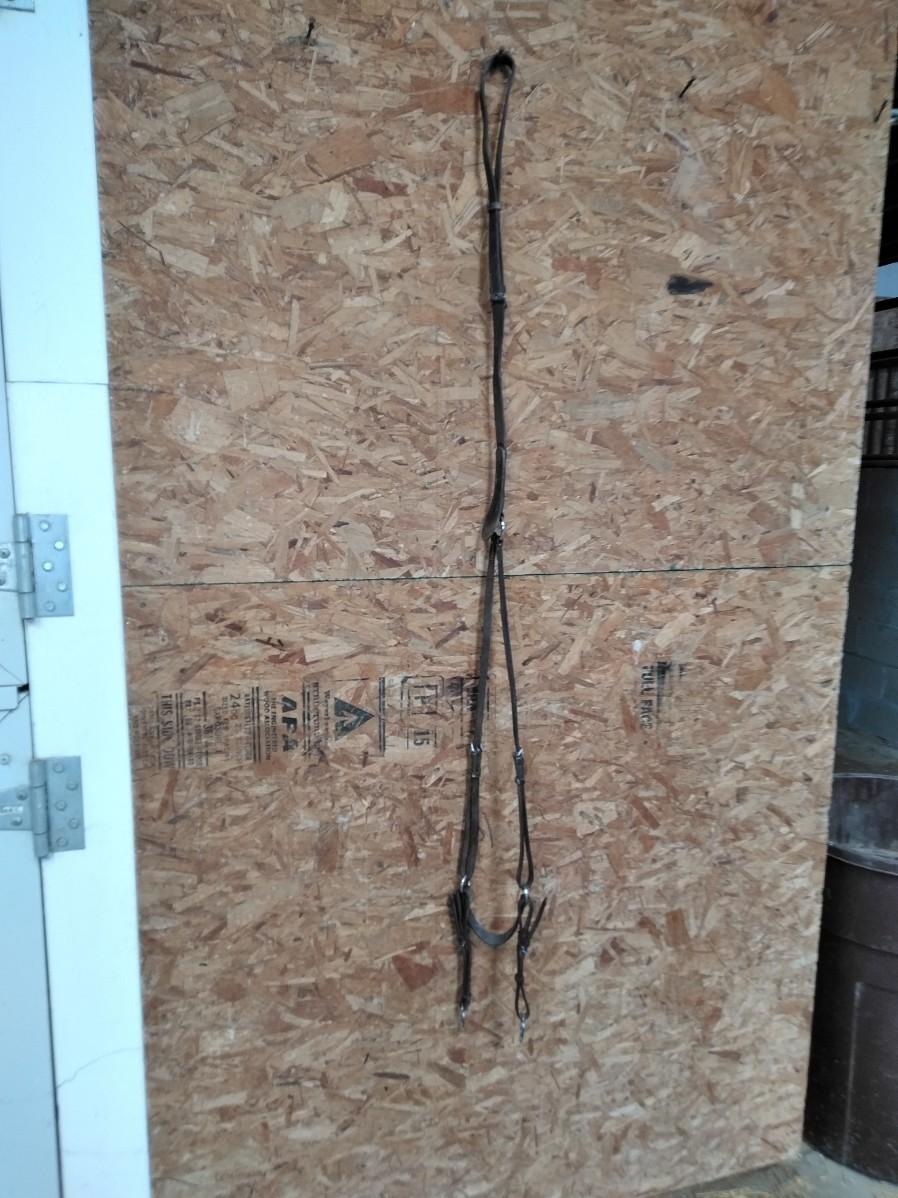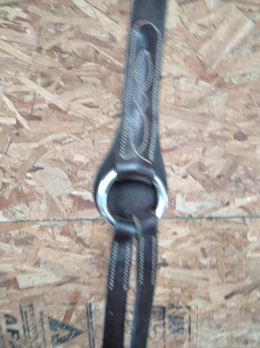 LEATHER ENGLISH BRIDLE STAMPED BOBBY'S ENGLISH, COMES WITH A LEATHER TIE DOWN