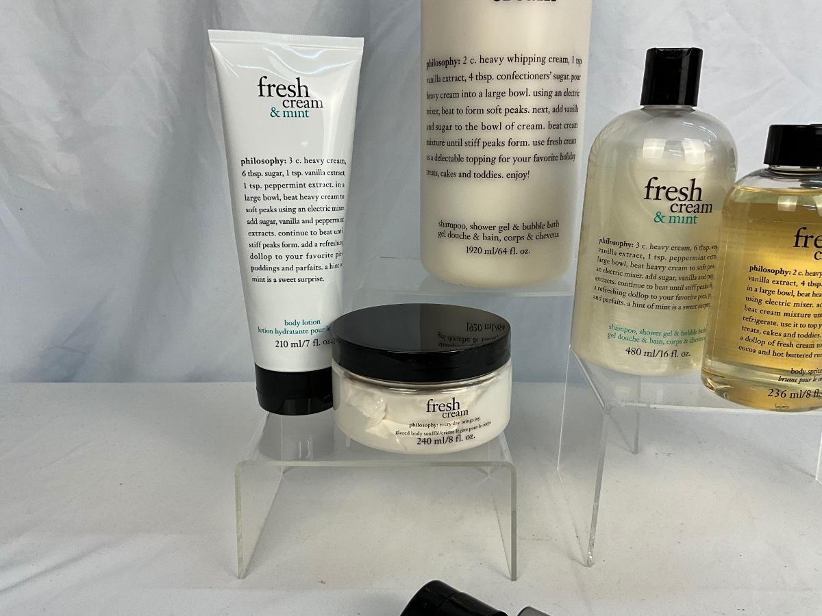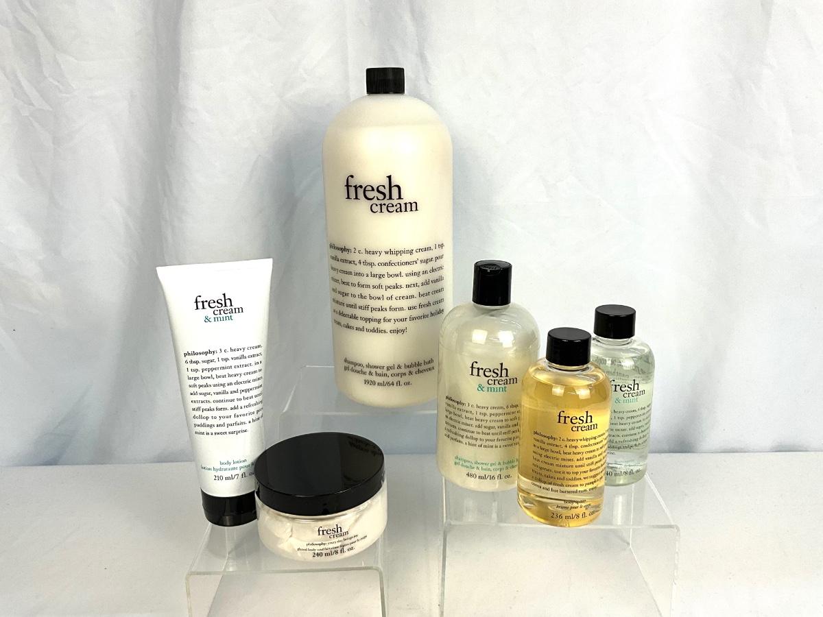This lot contains shampoo, body soufflé, cream and mint lotion, and 2 body spritz all made by Philosophy and brand new.