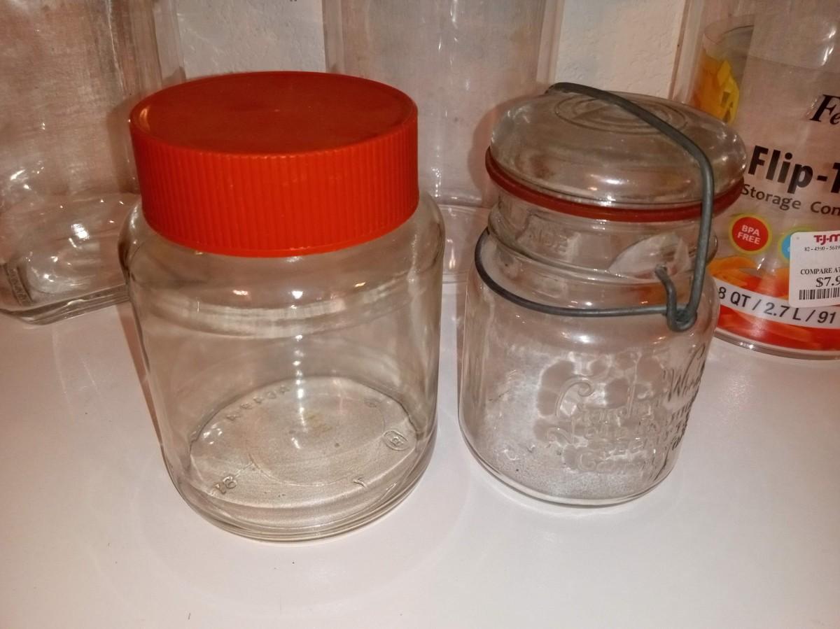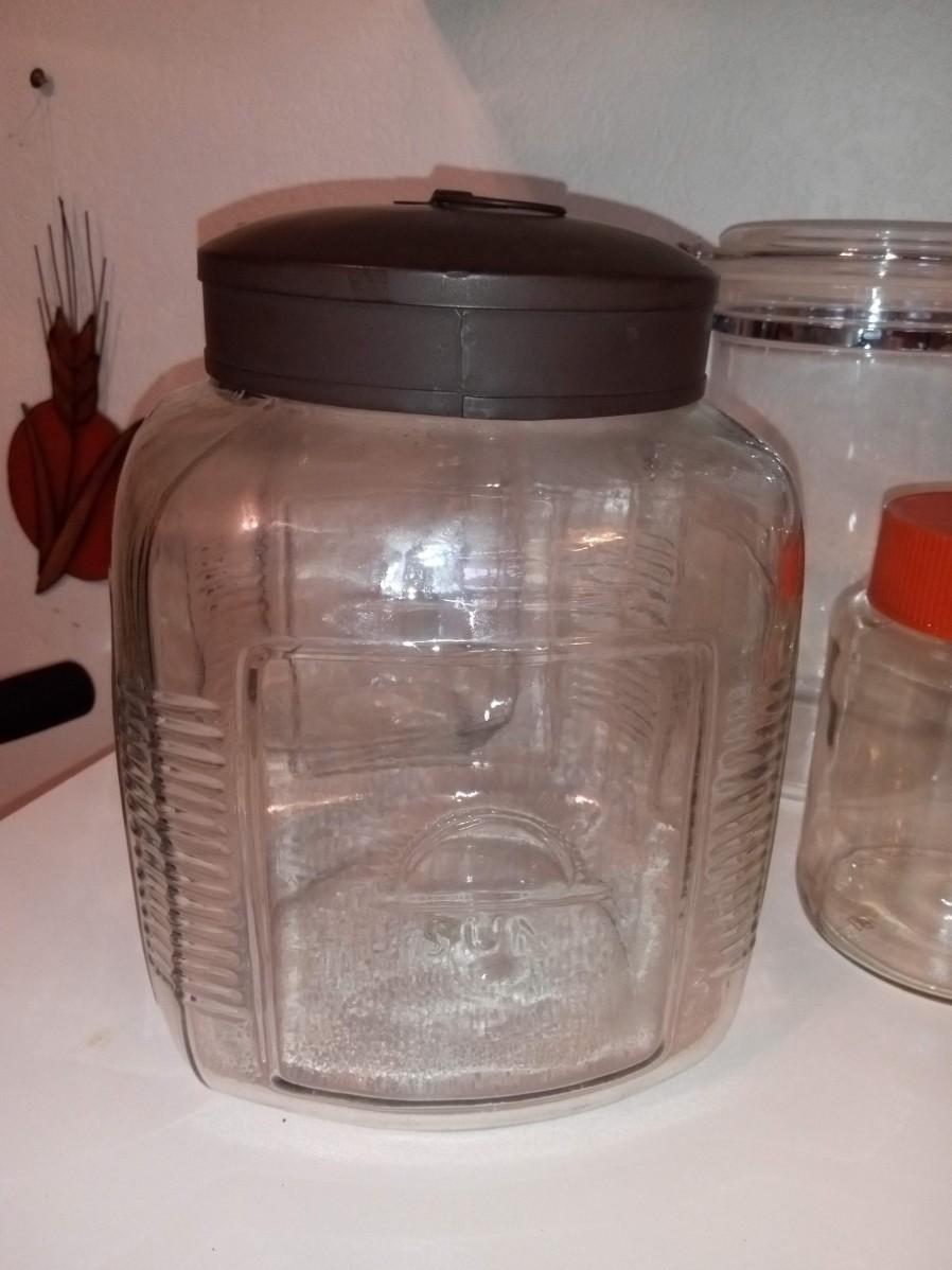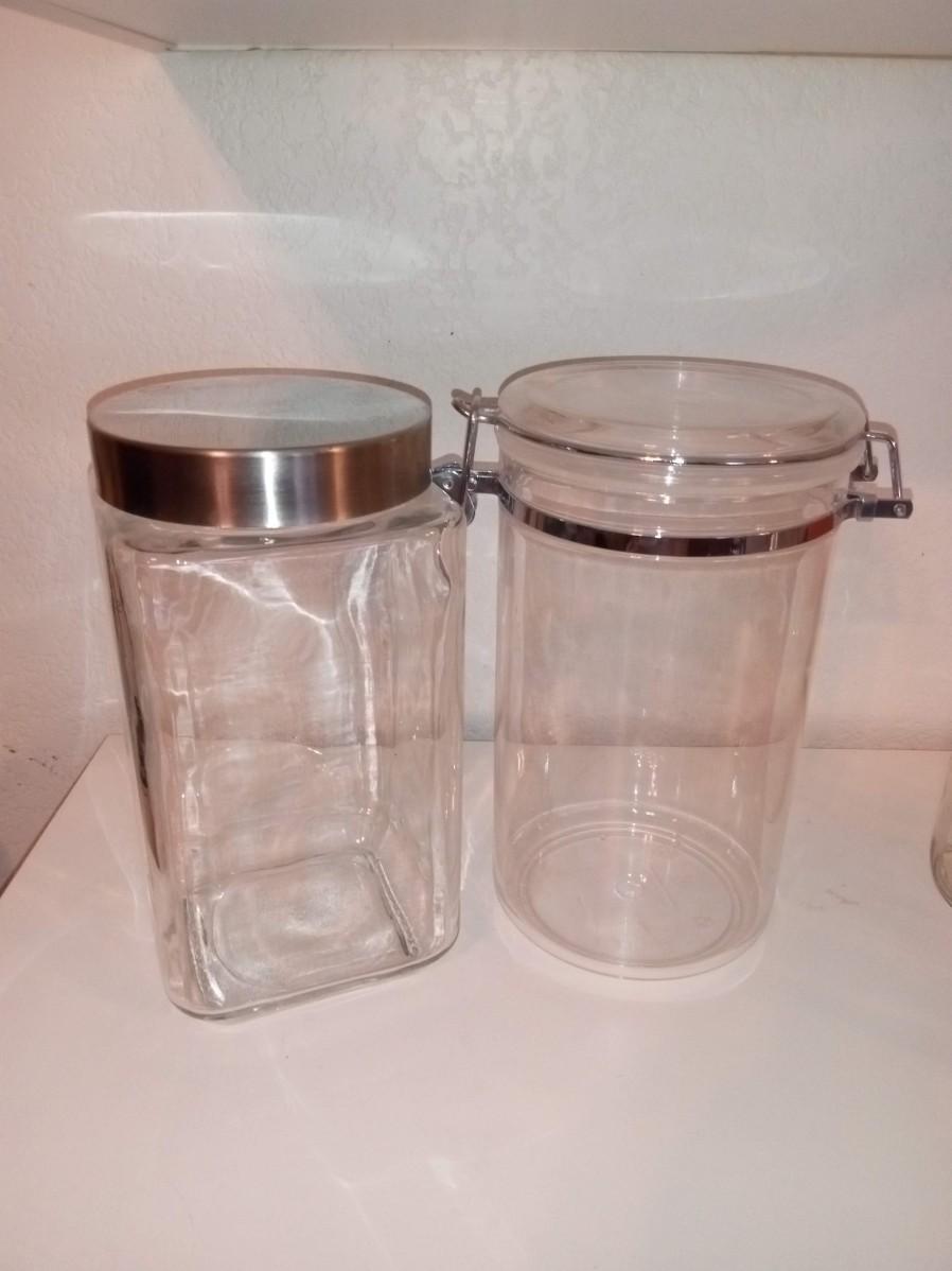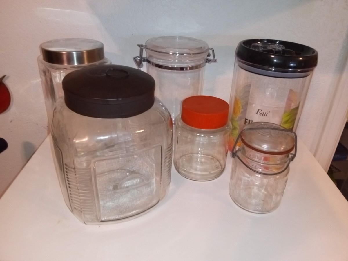 LOT 375  VARIOUS GLASS AND 1 PLASTIC CANISTERS