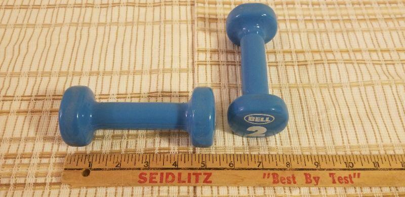 Lot #376: Pair of Vintage 2 lb Walking Light Exercise Barbells UNISEX Blue