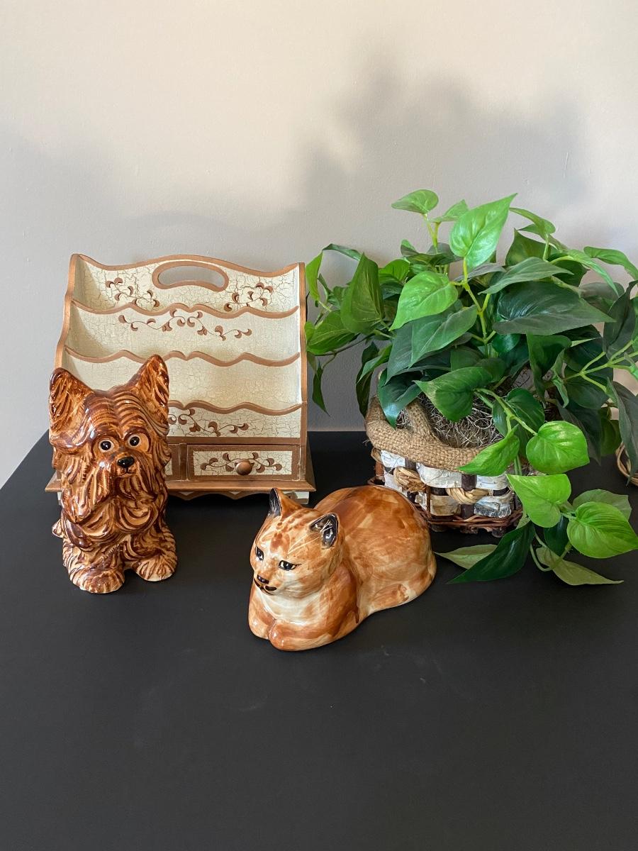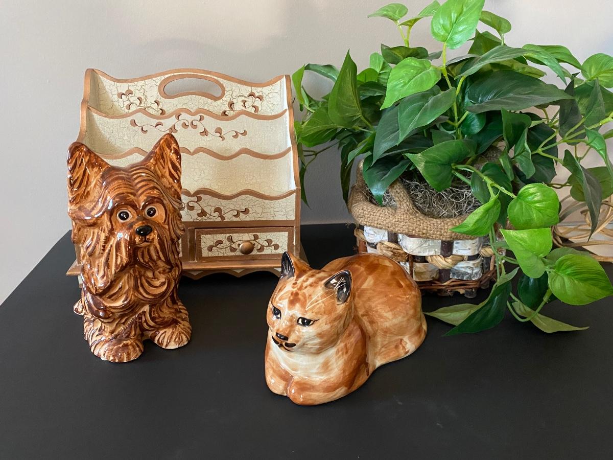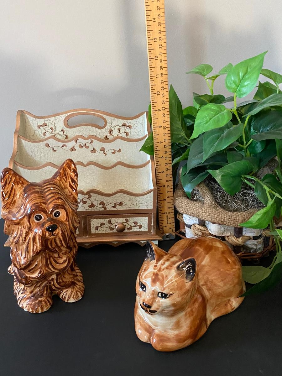Lot 376: Vintage Mann Figures, Wooden Letter Holder & Faux Plant