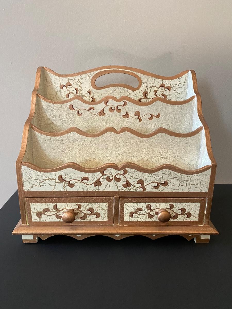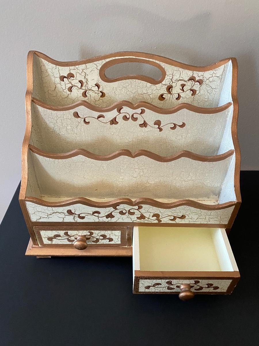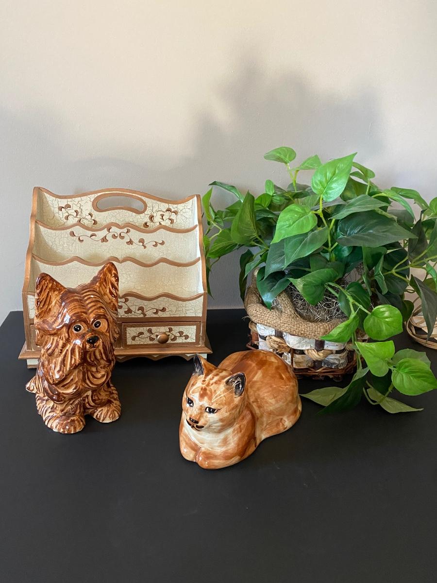Lot 376: Vintage Mann Figures, Wooden Letter Holder & Faux Plant