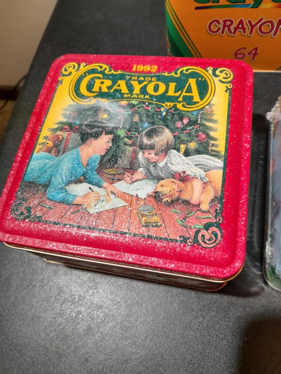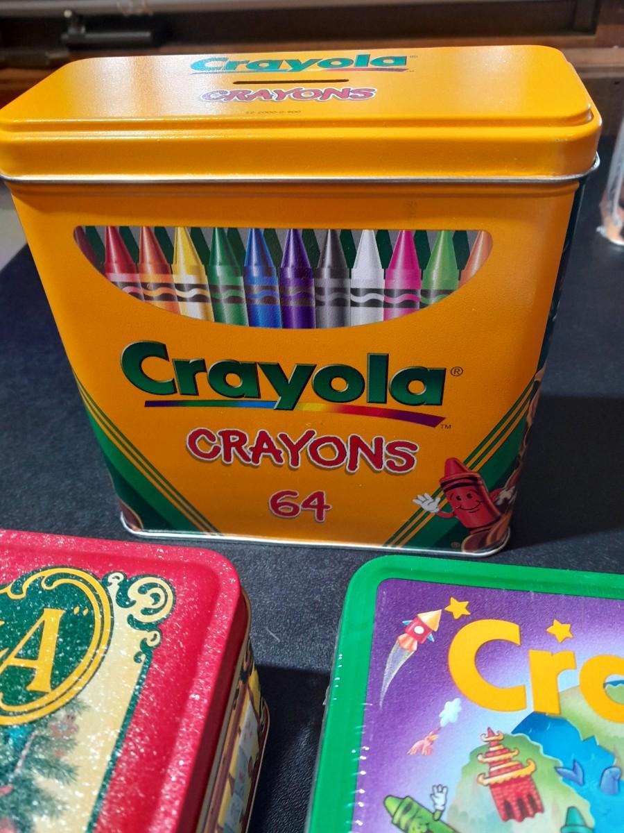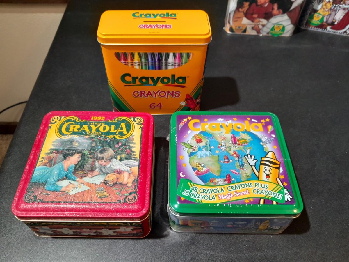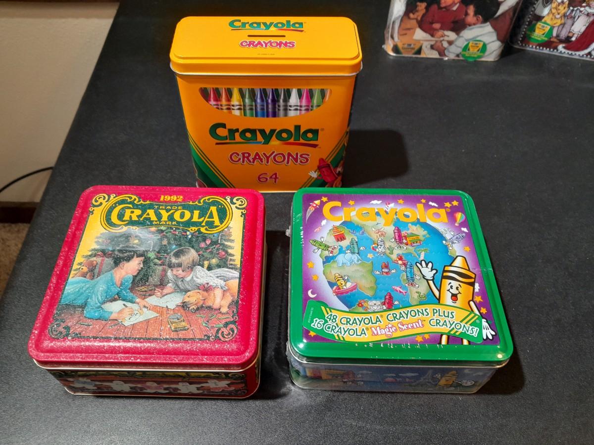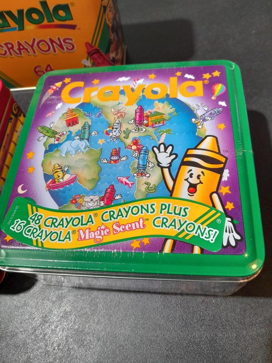 COLLECTIBLE CRAYOLA CRAYON TINS WITH CRAYONS ONE STILL SEALED!
