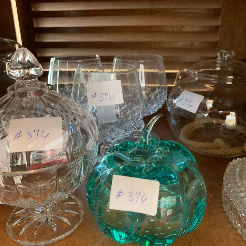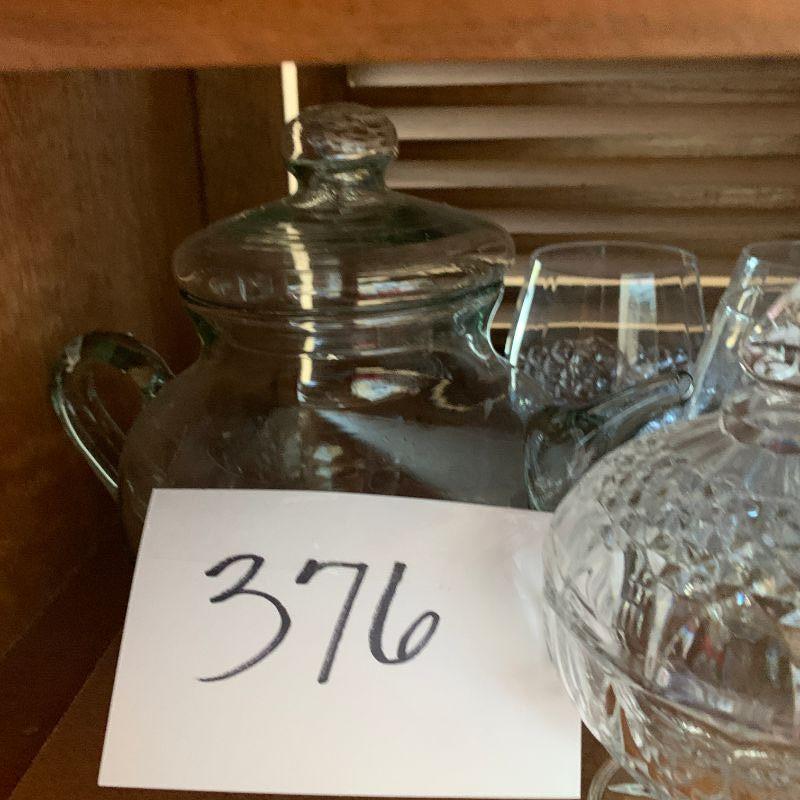 LOT 376 GLASS TEAPOTS AND TABLE DECORATIONS