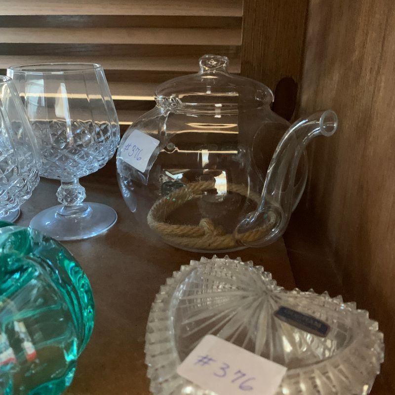 GLASS TEAPOTS AND TABLE DECORATIONS
