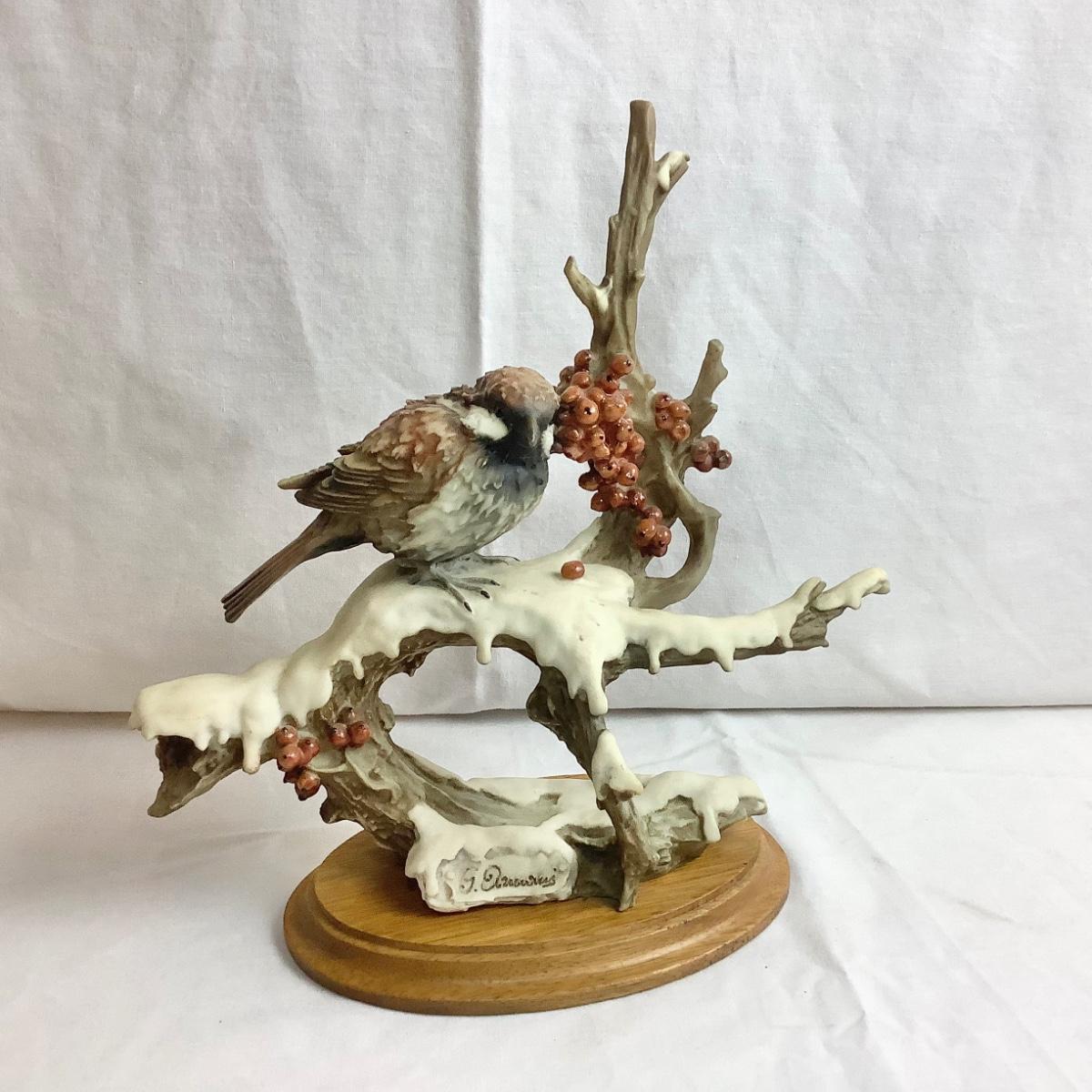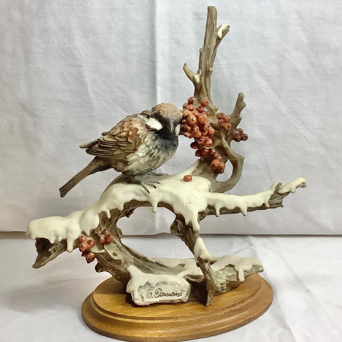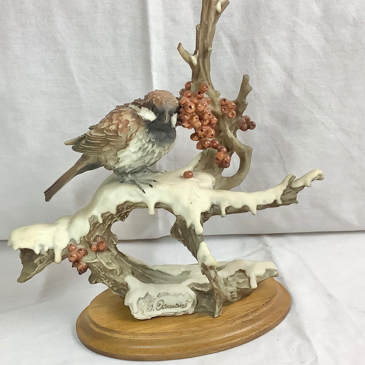 Signed Vintage 1983 Capodimonte Giuseppe Arman Bird - Sparrow on Snowy Branch Figurine