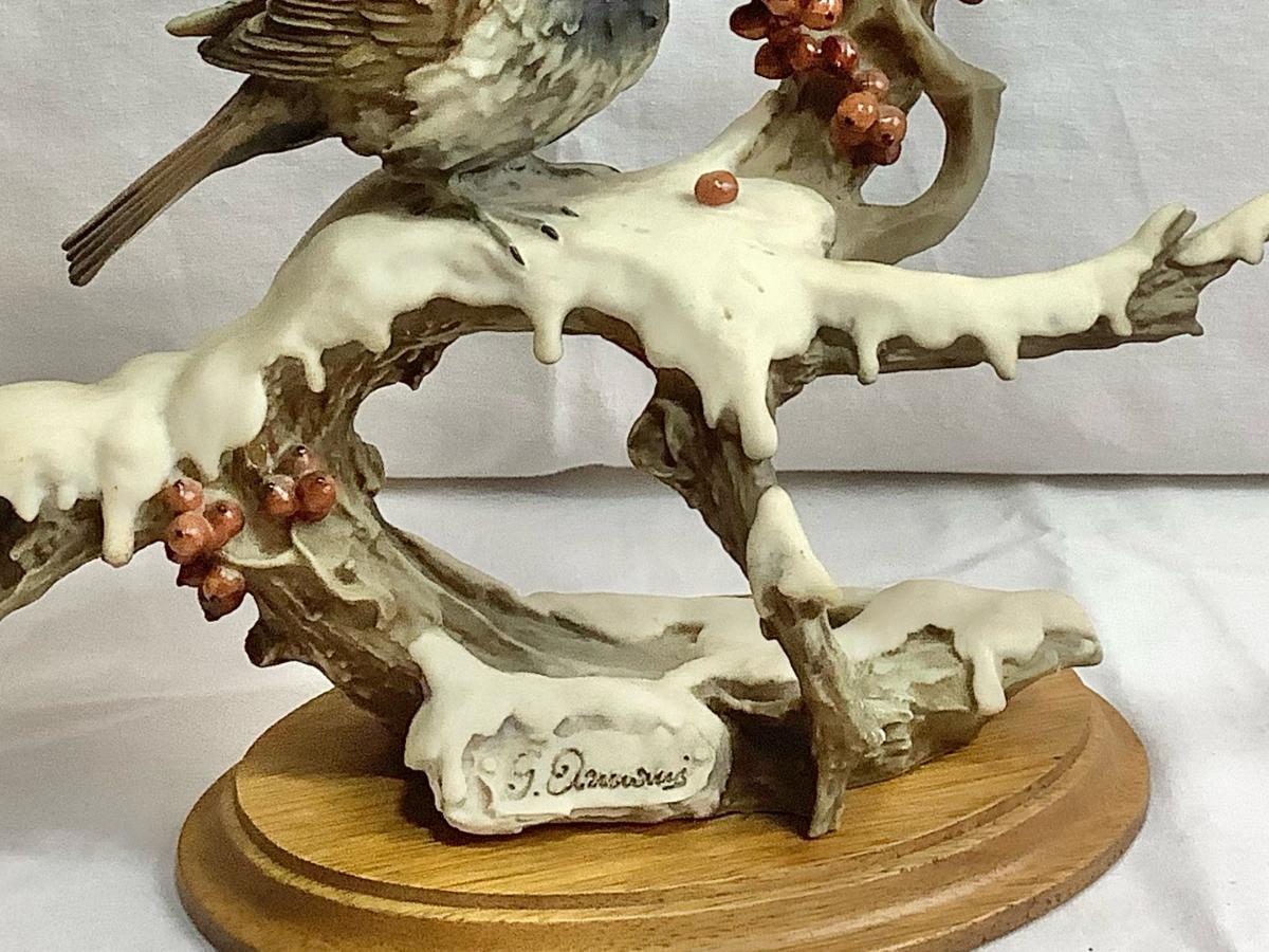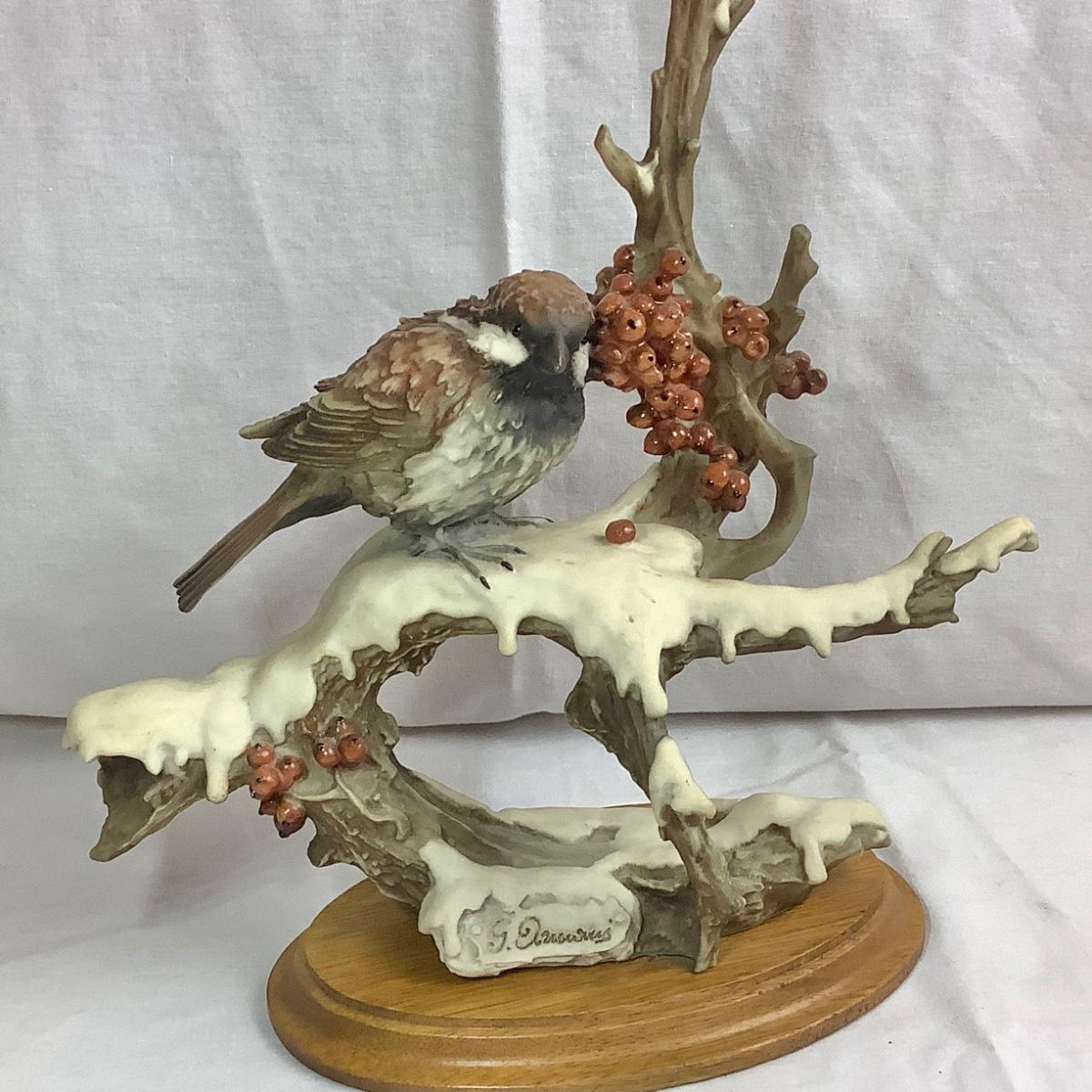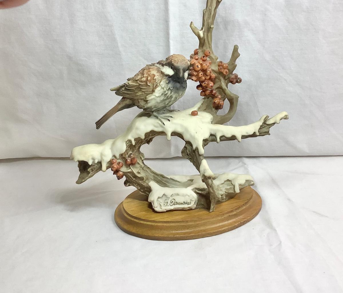 Signed Vintage 1983 Capodimonte Giuseppe Arman Bird - Sparrow on Snowy Branch Figurine