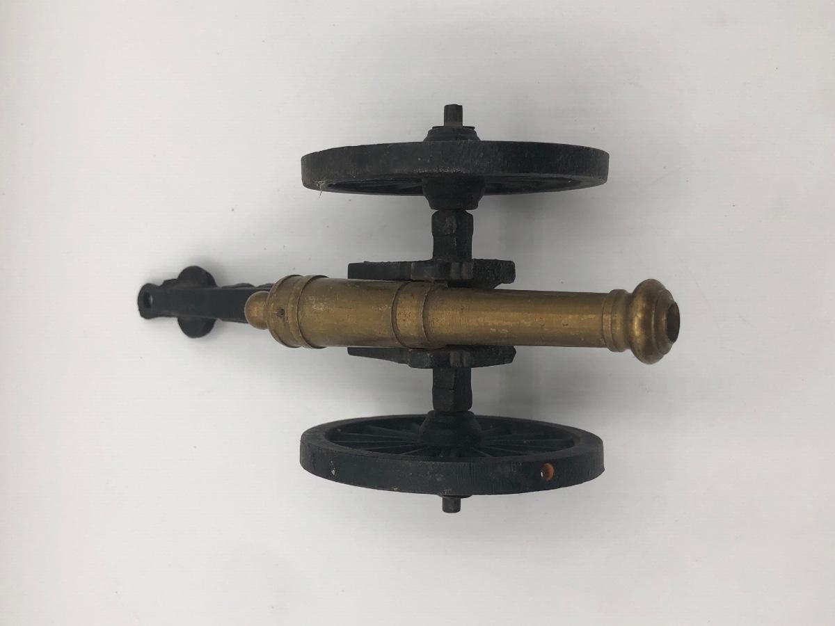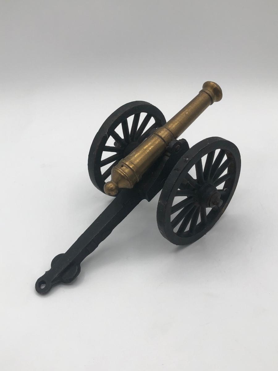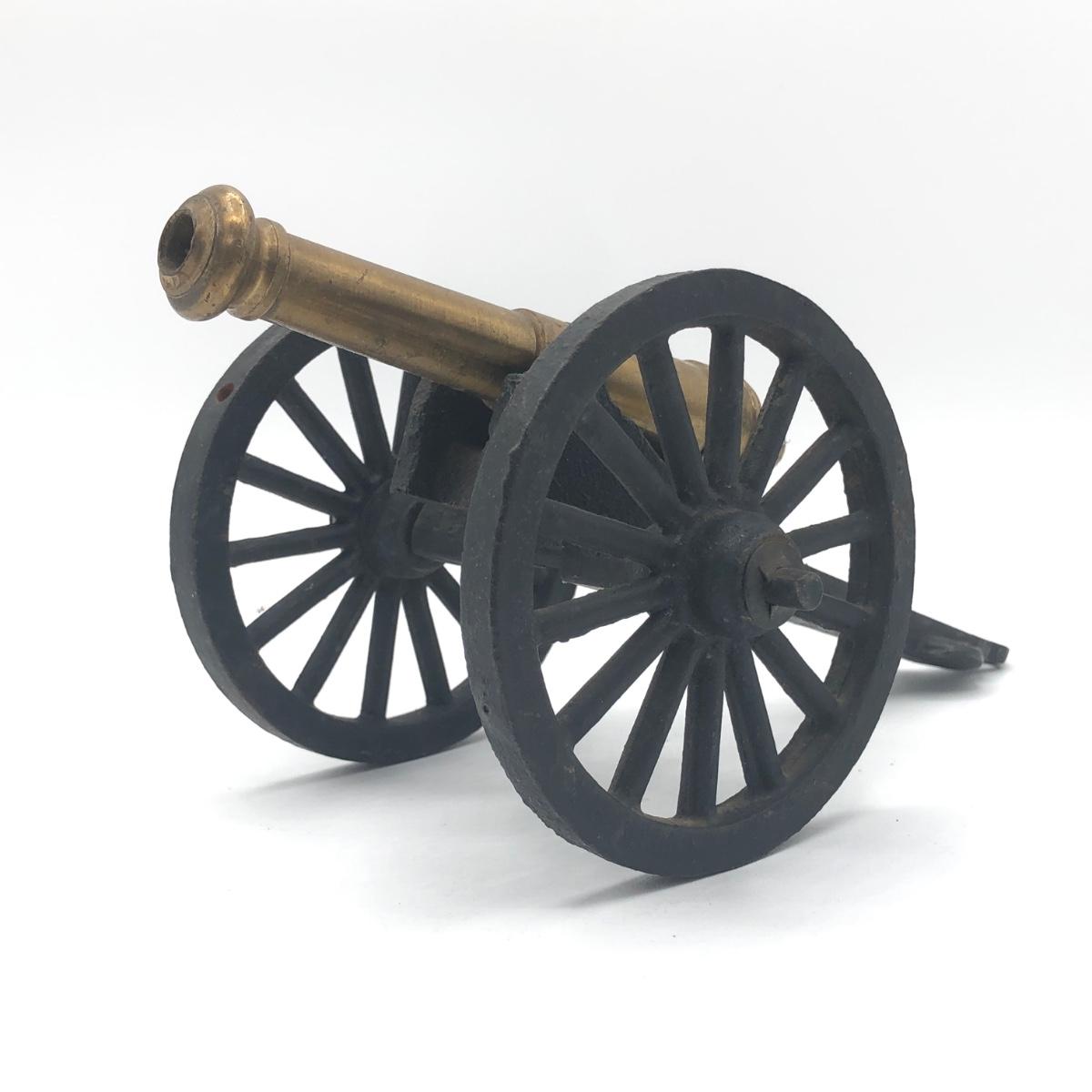 LOT 376L: Vintage French Commerce Cast Metal Sculpture & Die Cast Brass Canon Replica made in USA