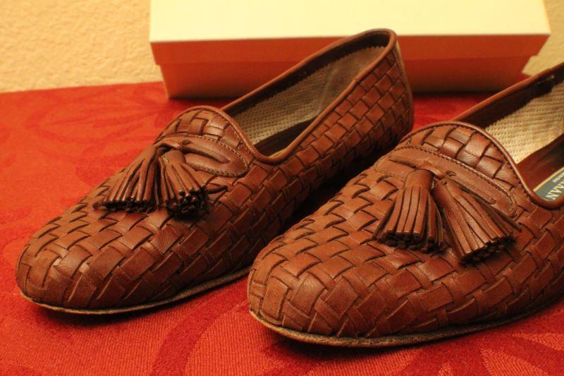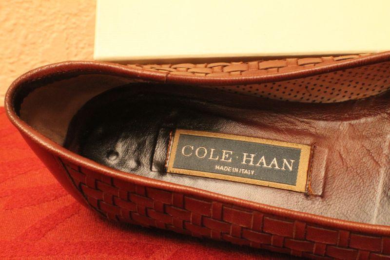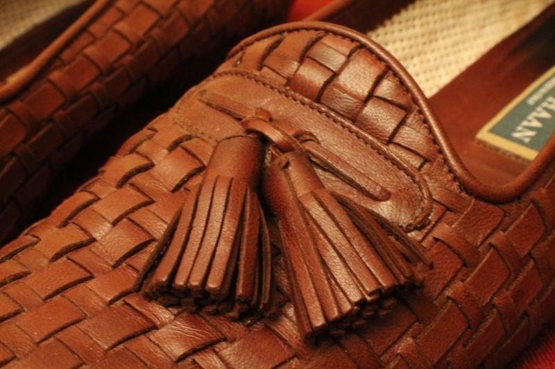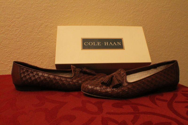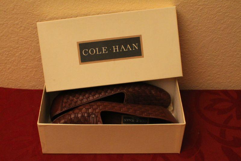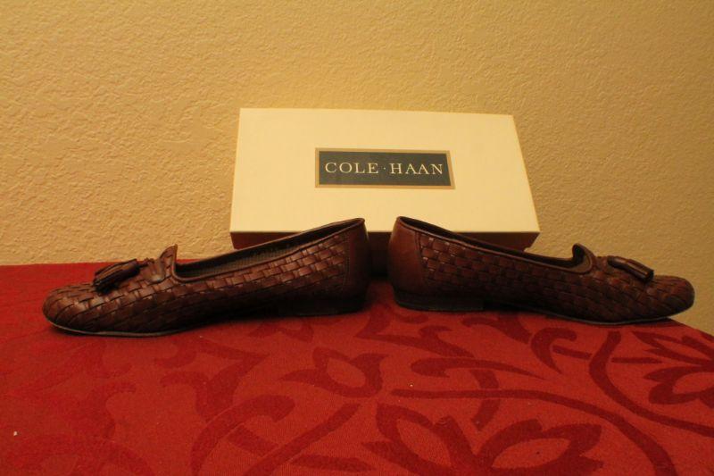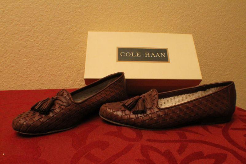 LOT #377: COLE HAANâ„¢ Woven Leather "Justin 2" Dark Cognac Tassel Loafers SIZE 9 AA