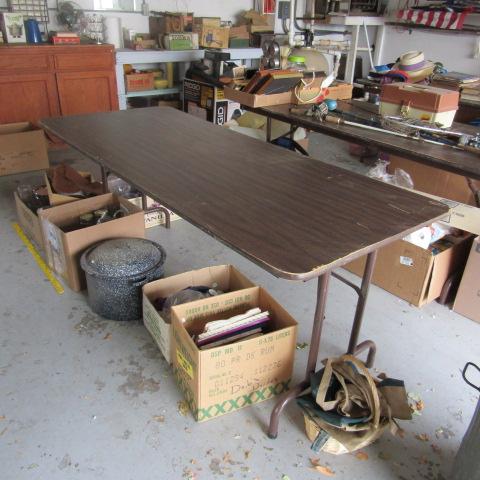 LOT 377 THREE BANQUET TABLES & 12 FOLDING CHAIRS