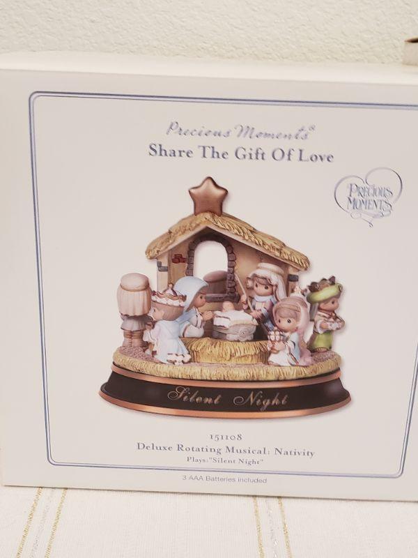 Lot 379: New Precious Moments Nativity and Family Christmas Scene
