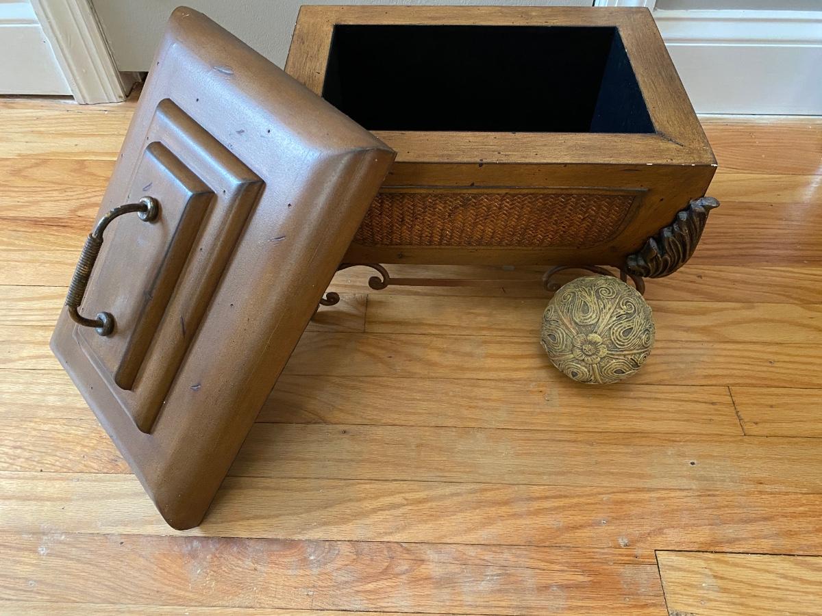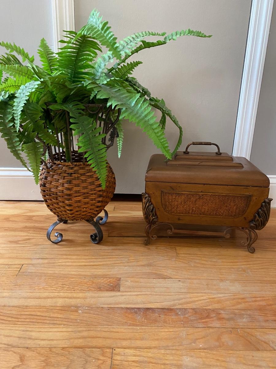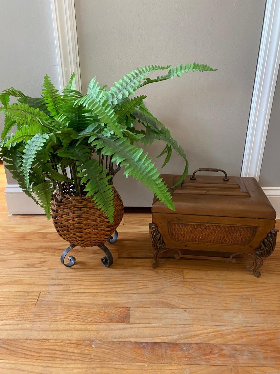 Lot 377: Metal & Wooden Storage Box with  Faux Plant in Basket