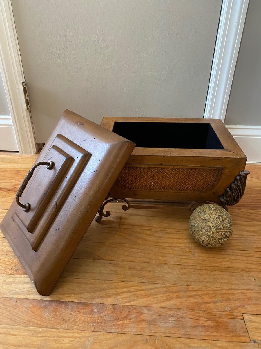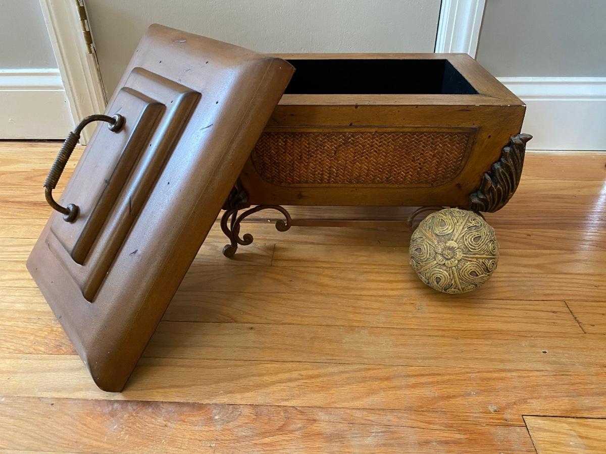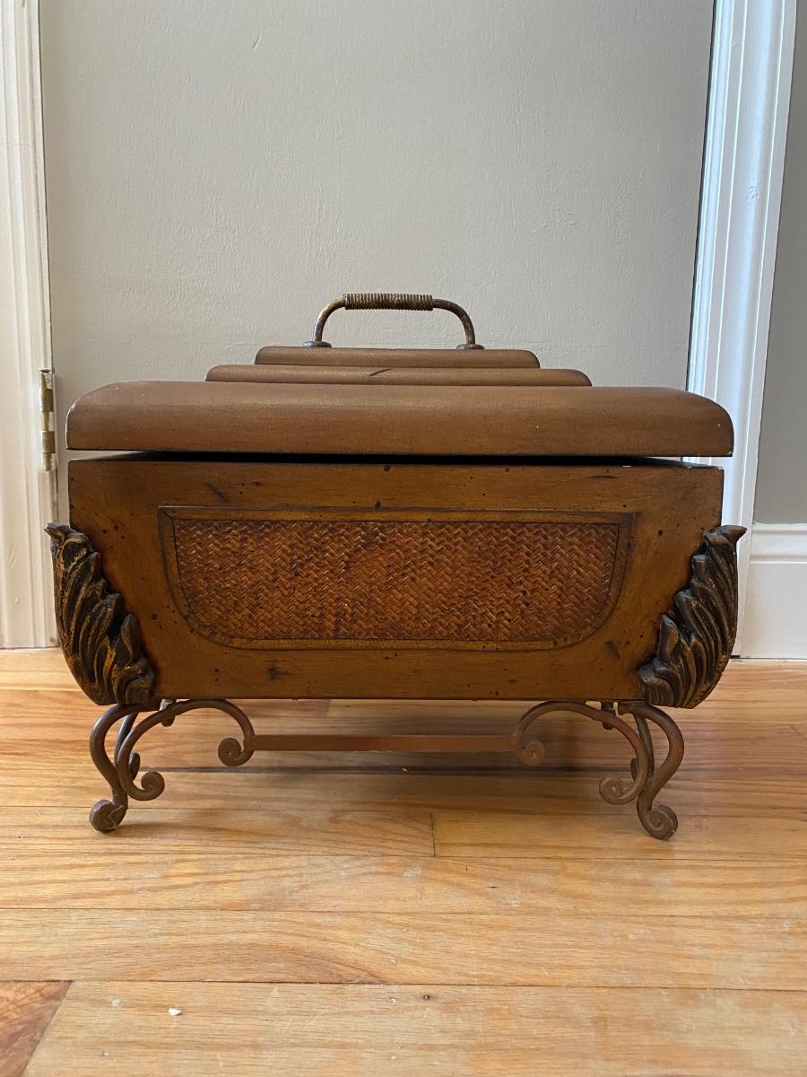 Lot 377: Metal & Wooden Storage Box with  Faux Plant in Basket