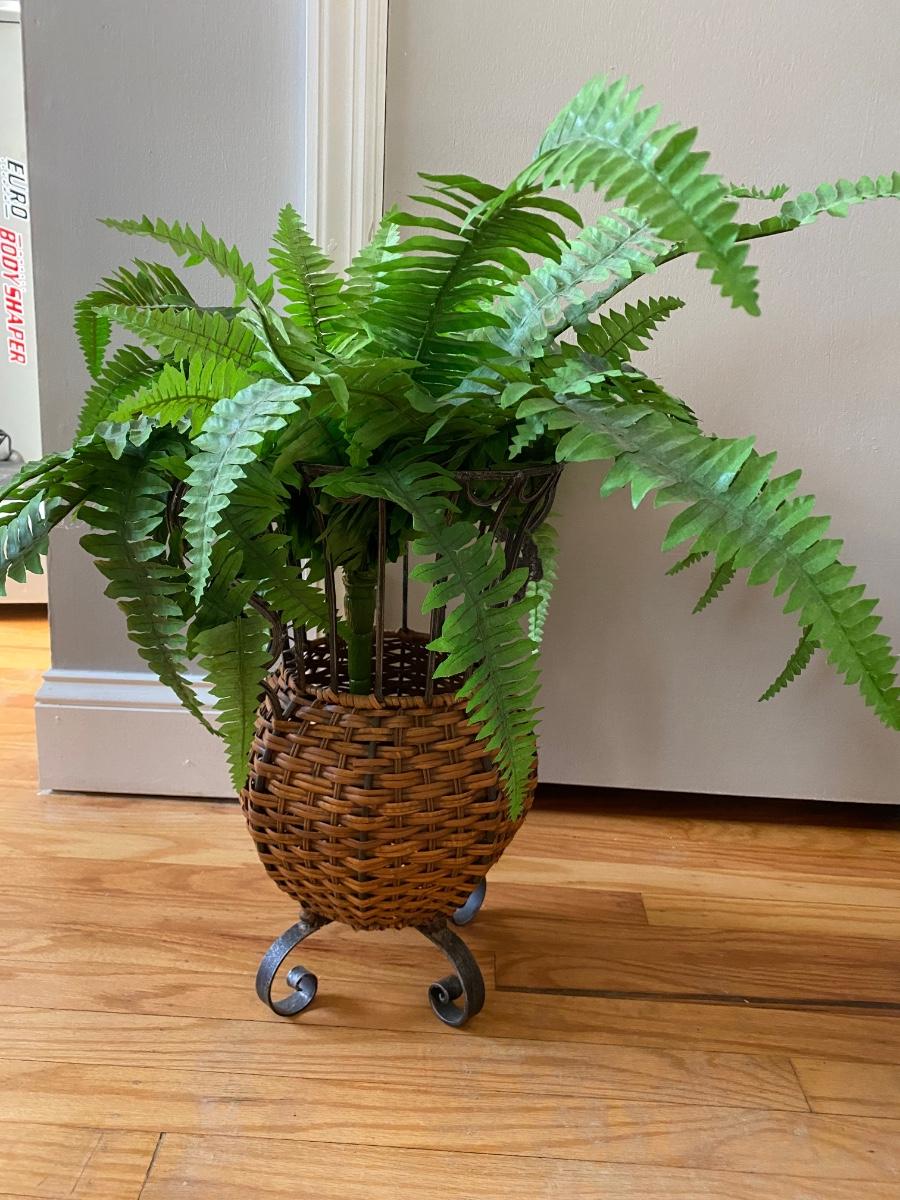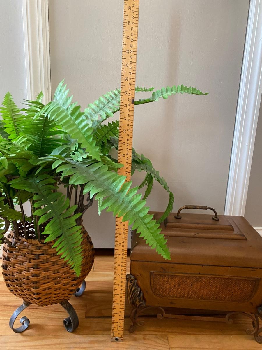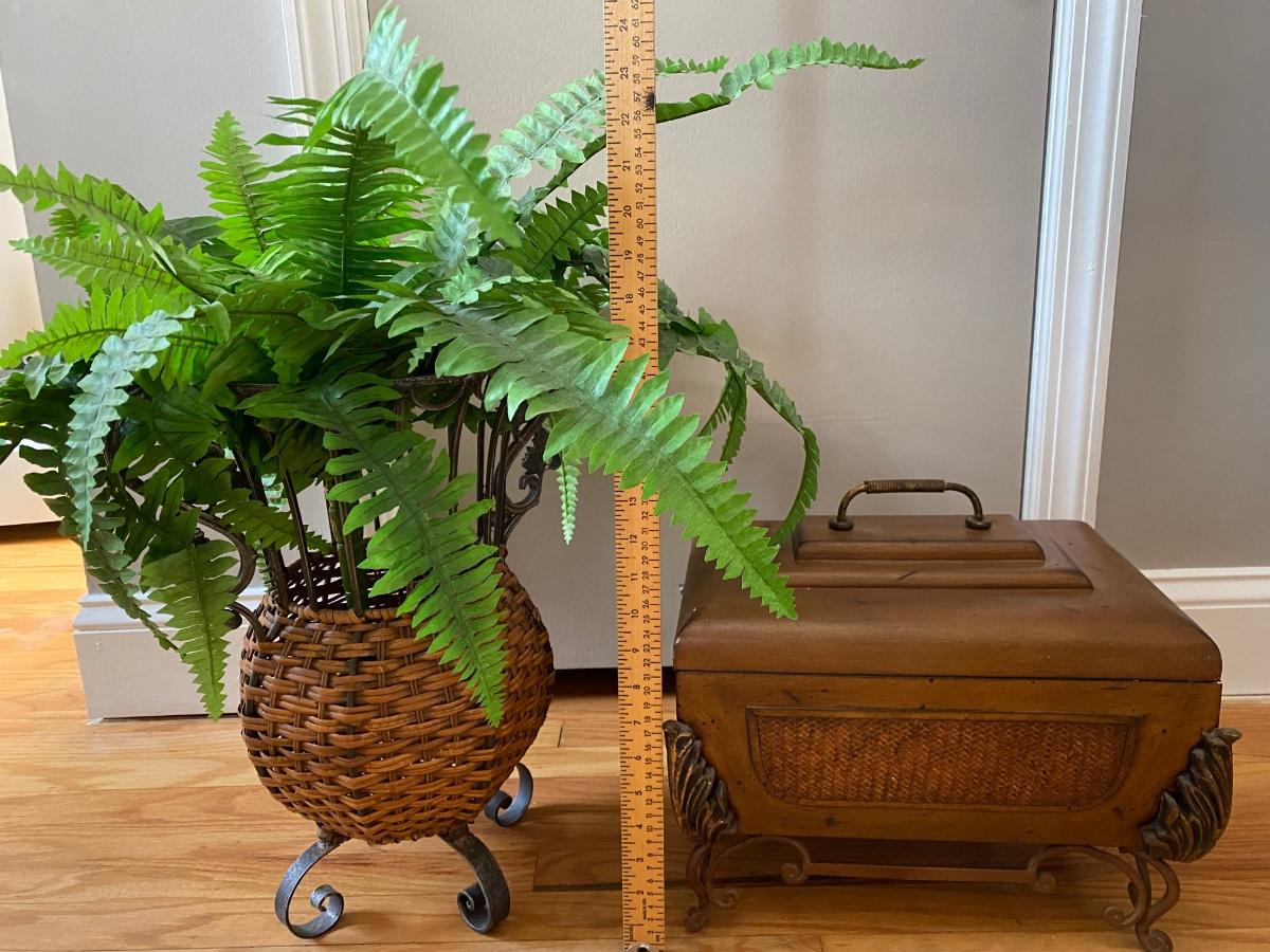 Lot 377: Metal & Wooden Storage Box with Faux Plant in Basket
