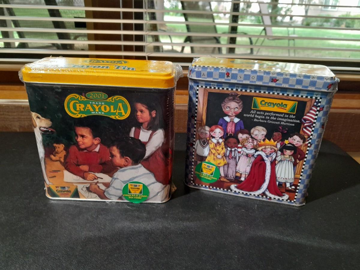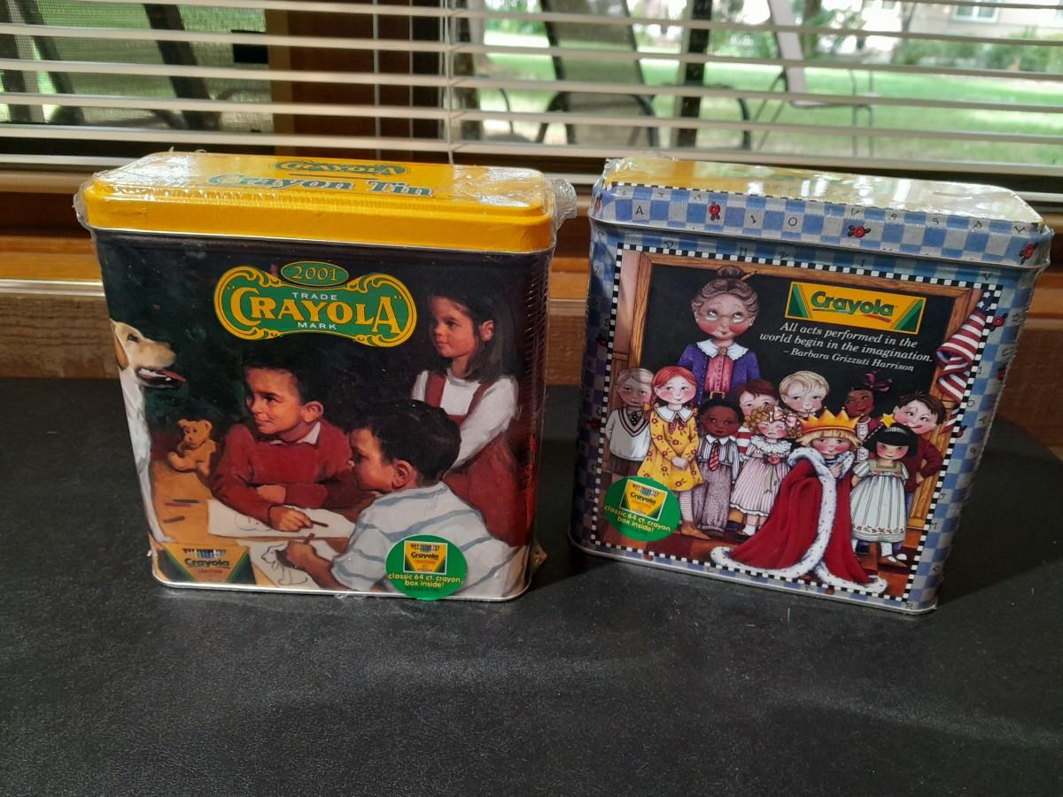 TWO SEALED COLLECTIBLE CRAYOLA TINS WITH CRAYONS