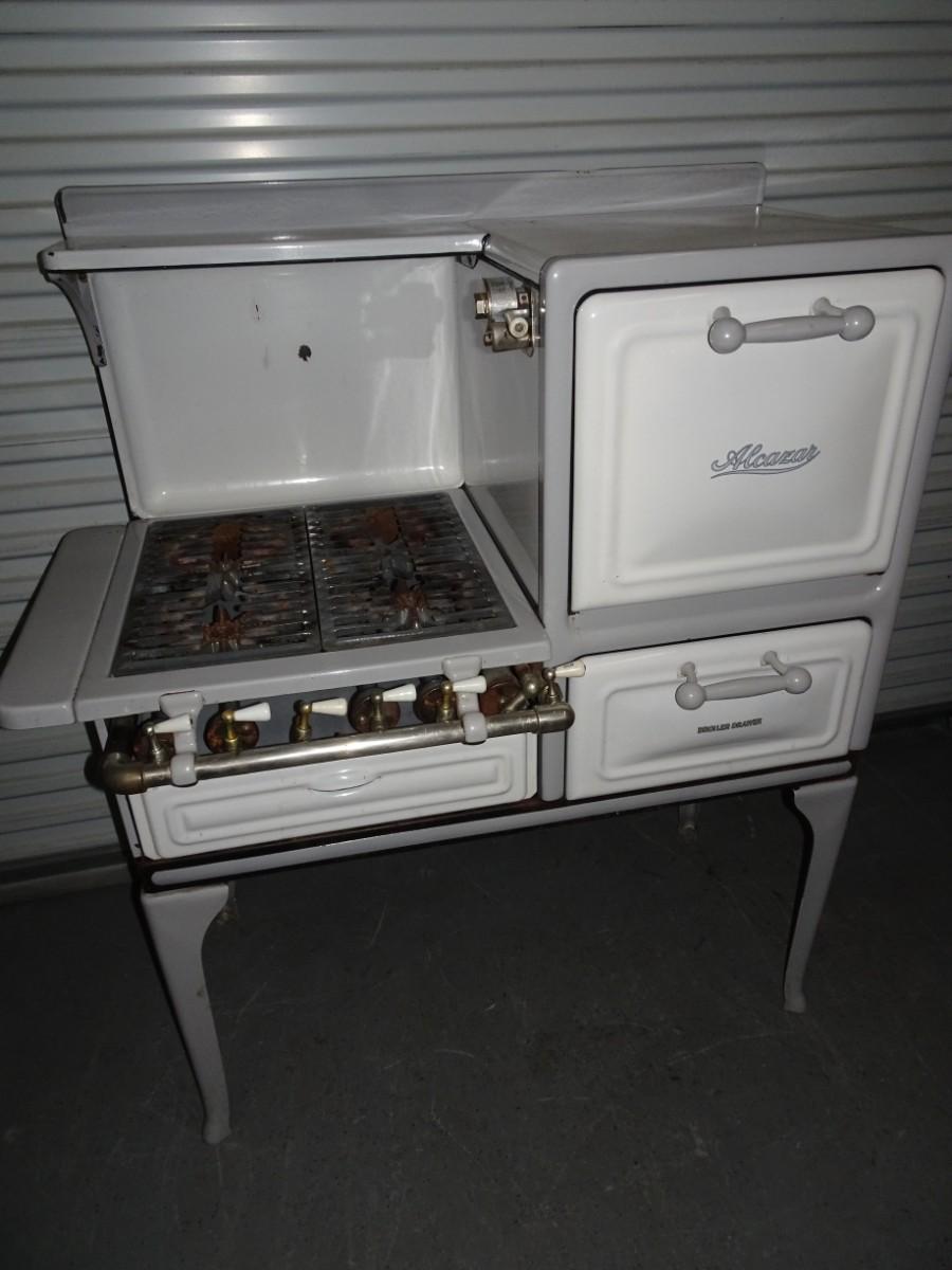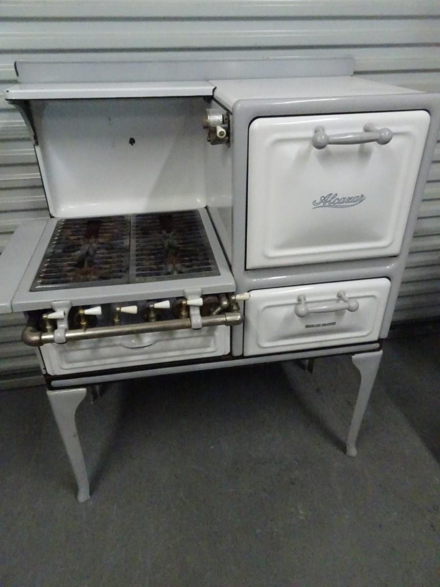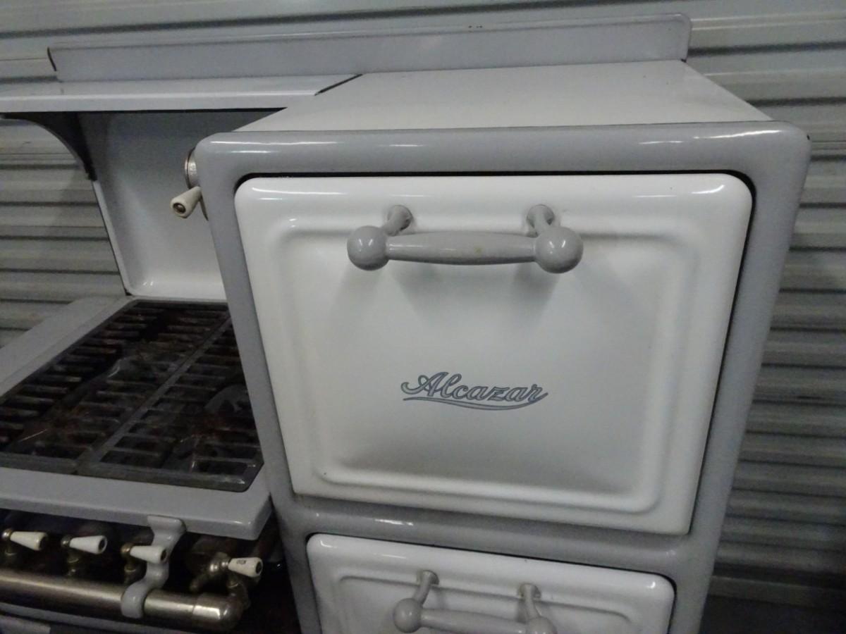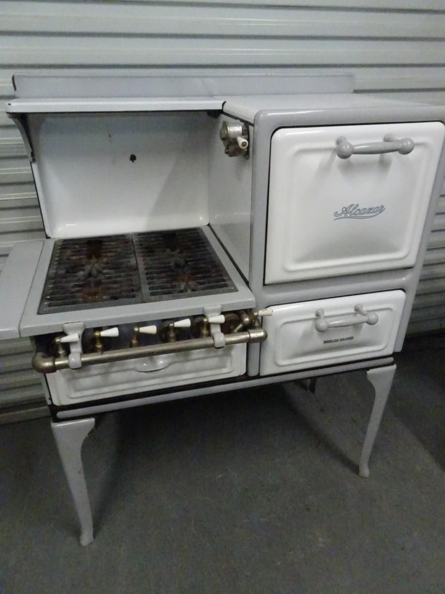 LOT 377. VINTAGE ALCAZAR ENAMEL NATURAL GAS STOVE