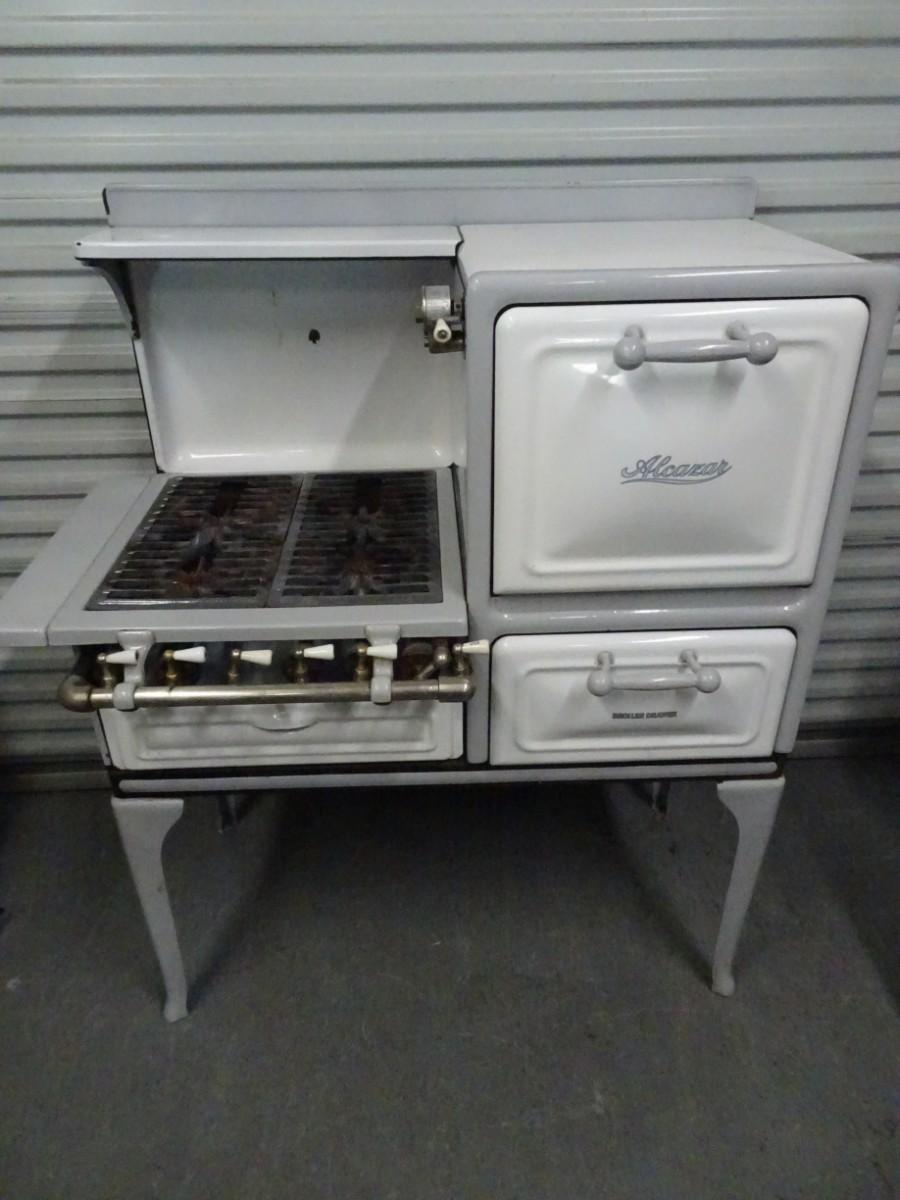LOT 377. VINTAGE ALCAZAR ENAMEL  NATURAL GAS STOVE
