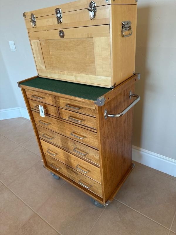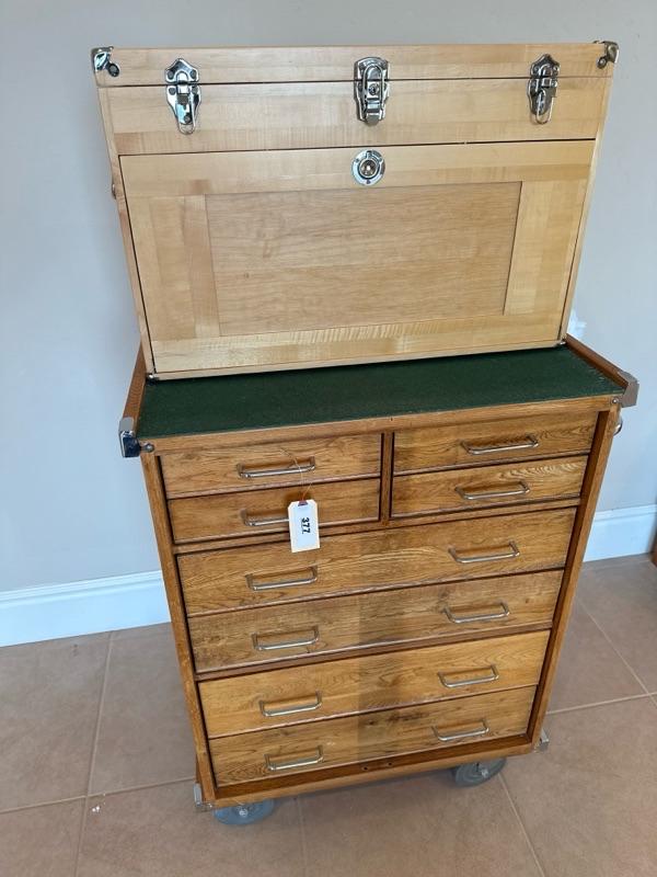 Lot 377 Wood roller cabinet in chest