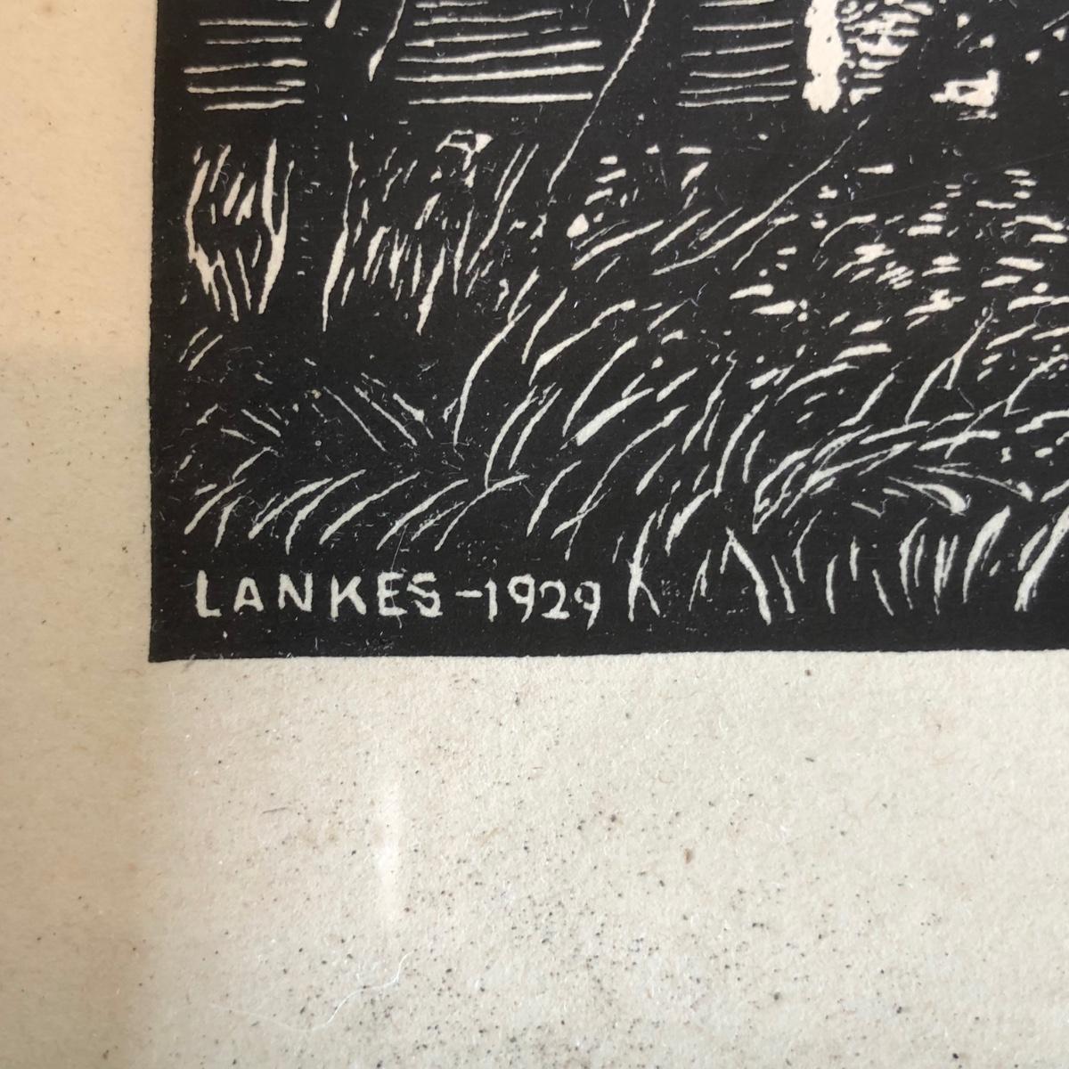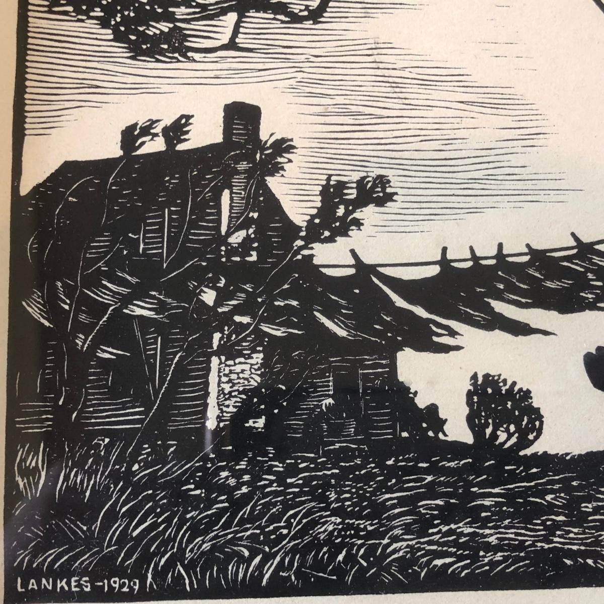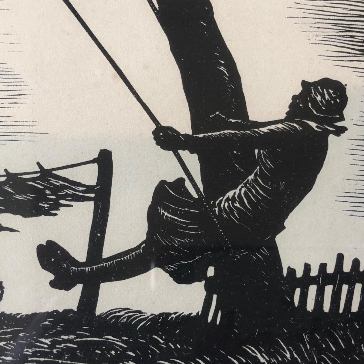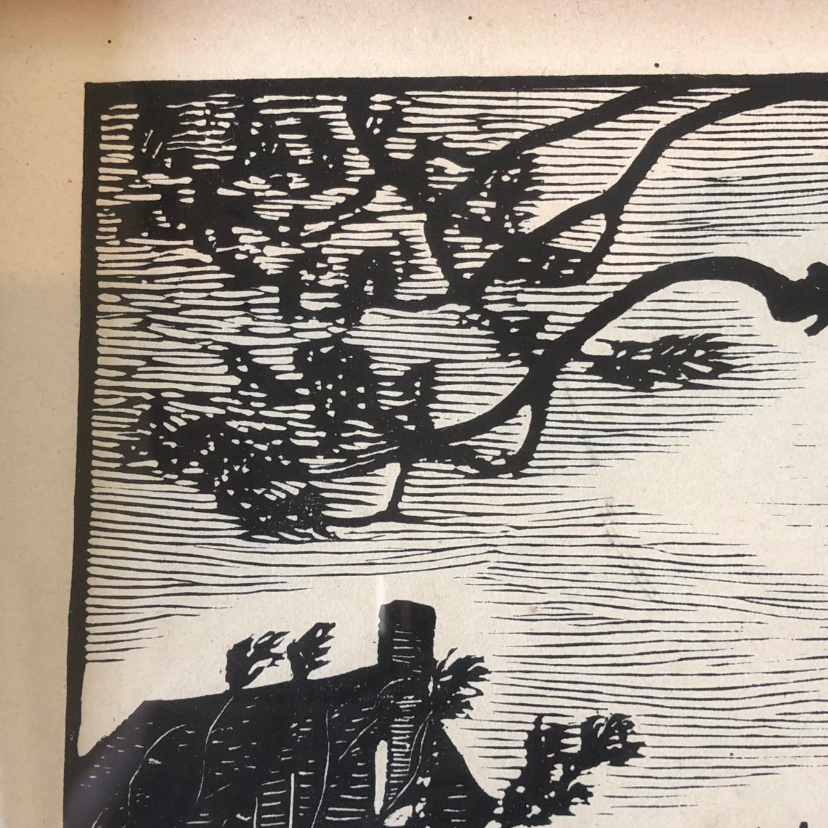 LOT 377L: Vintage 1929 Julius J Lankes (American, 1884-1960) Black Linework Woodcut Swinging Artwork